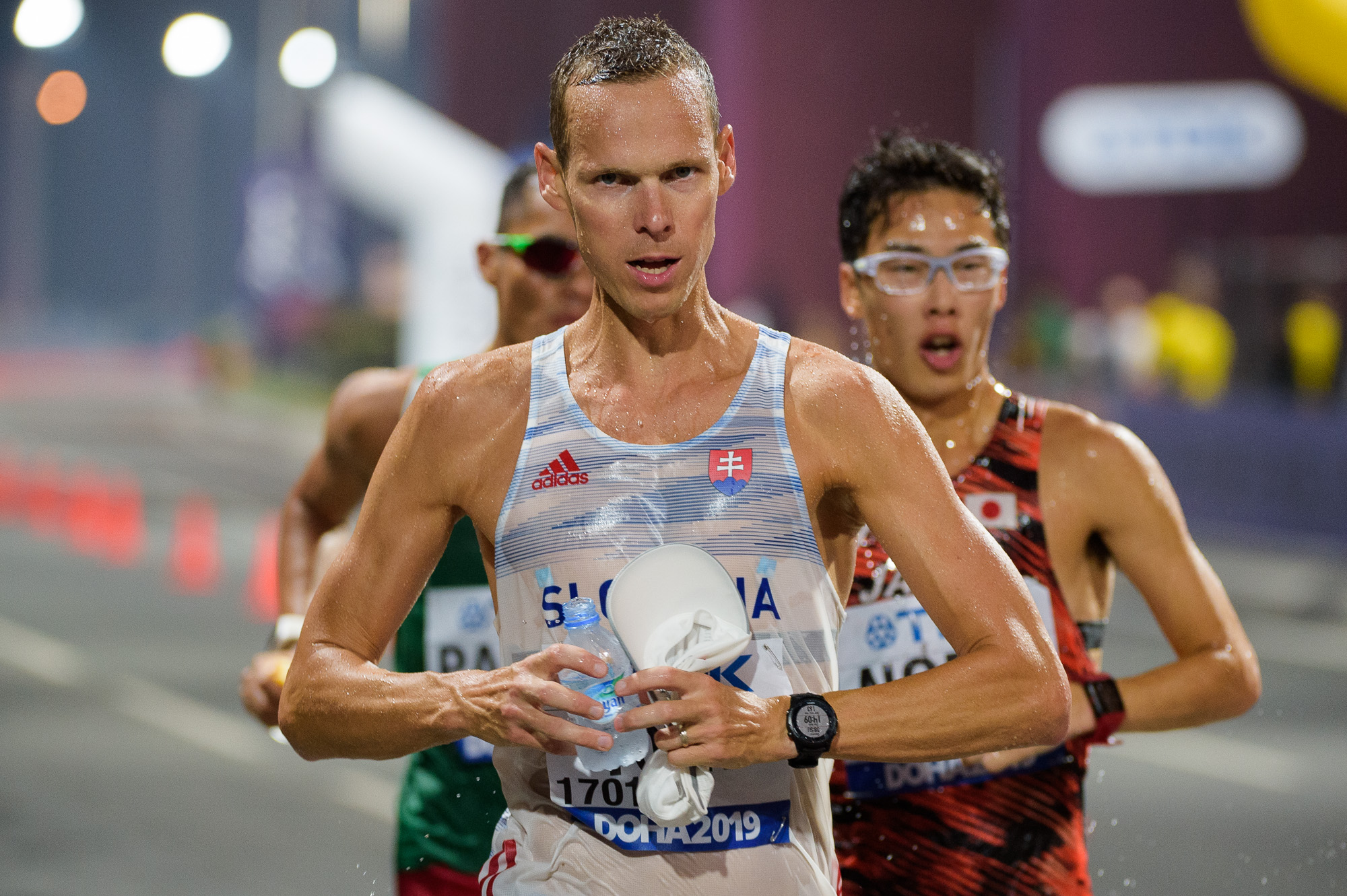 „Bolo to od prvých metrov niečo, čo som vôbec neočakával – že pôjdeme v takom pomalom tempe a nebudem poriadne vládať. Tréningy priamo v Dauhe vôbec nenaznačovali až takýto extrém: chodil som v pohodičke v tempe pod päť minút, cítil som sa veľmi dobre, aj pulzy som mal len o trochu vyššie ako pri bežnej všeobecnej príprave. Teraz som šliapal v tempe okolo 5 minút, ale pulz som mal, ako keby som išiel kilometre pod  4:30 min. Od začiatku mi to vôbec nesadlo, aj podmienky boli extrémne náročné a celkovo – vôbec mi nesadol deň. No nebol som jediný, poriadne sa vytrápili aj ďalší. Dnes to bolo o tom, kto a ako nastavil svoju myseľ: či to odpochoduje za každú cenu až do cieľa, alebo či ho odnesú z trate až na nosidlách. Ja som si už pred štartom povedal, že nepôjdem proti zdraviu a prírode. Sľúbil som aj doma, že ak sa budem cítiť veľmi zle, tak skončím a zídem z trate po vlastných.“