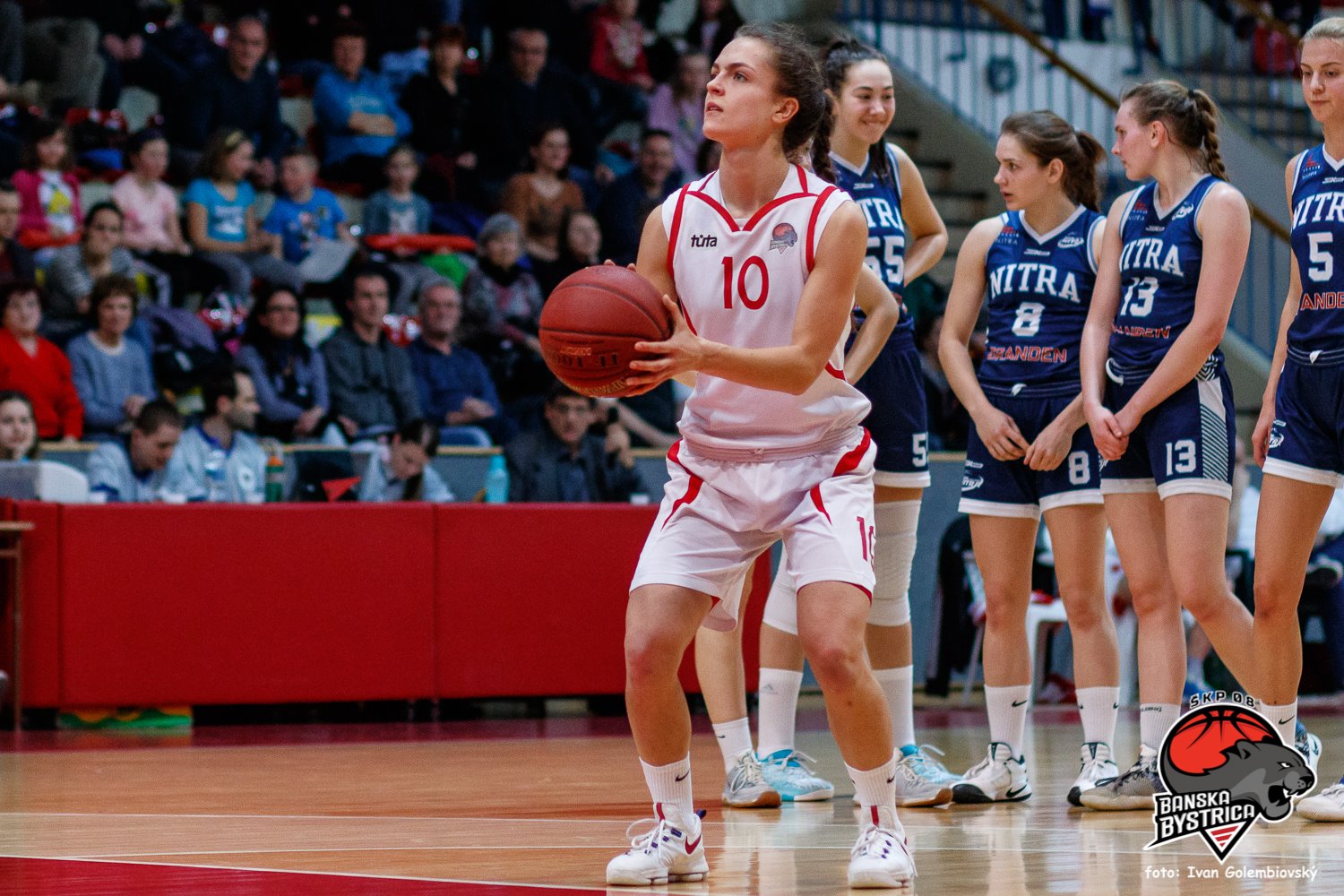 Základ víťazstva položili naše basketbalistky v prvej štvrtine. Vstup do zápasu mali excelentní, najmä zásluhou produktívnej Striešovej išli do vedenia 10:0. Nitranky dali prvý kôš až v šiestej minúte, znižovali na 10:2 a neskôr na 15:4 a 15:6, keď sa presadila Svetlíková. Inak nárok nemali. Bystričankám dobre fungovala obrana i útok. V druhej štvrtine sme navýšili náskok na 21:6, ale súper z trestných hodov znížil na 21:12. Tieto momenty však naše družstvo nerozhodili, strelecky sa chytila Verlíková, takže vedenie o 15 bodov sme nestrácali. Pred polčasom v poslednej pol minúte dali koše Striešová a Jelenčíková, takže na prestávku išli ´pumy´ nad mieru spokojné – 37:18.