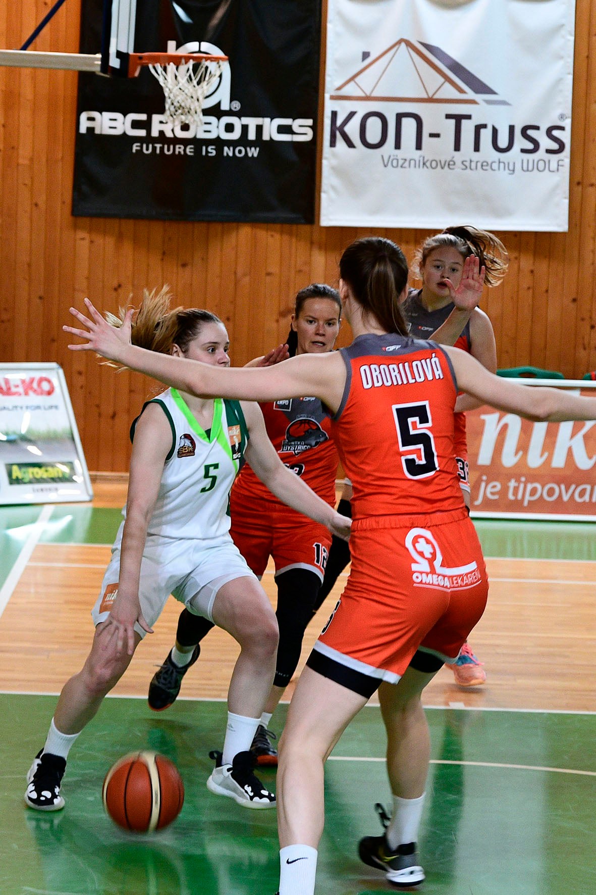 Štvrtiny: 14:14, 15:8, 12:19, 10:18, TH: 5/5 (100 %) – 12/15 (80 %), trojky: 2 – 7, fauly: 16 – 9, doskoky: 34 – 43, asistencie: 15 – 14, zisky: 10 – 8, straty: 20 – 18, bloky: 1 – 1, streľba z poľa: 22/56 (39 %) – 20/64 (31 %). Rozhodovali: Obertová, Marek a Stopka. Bez divákov.