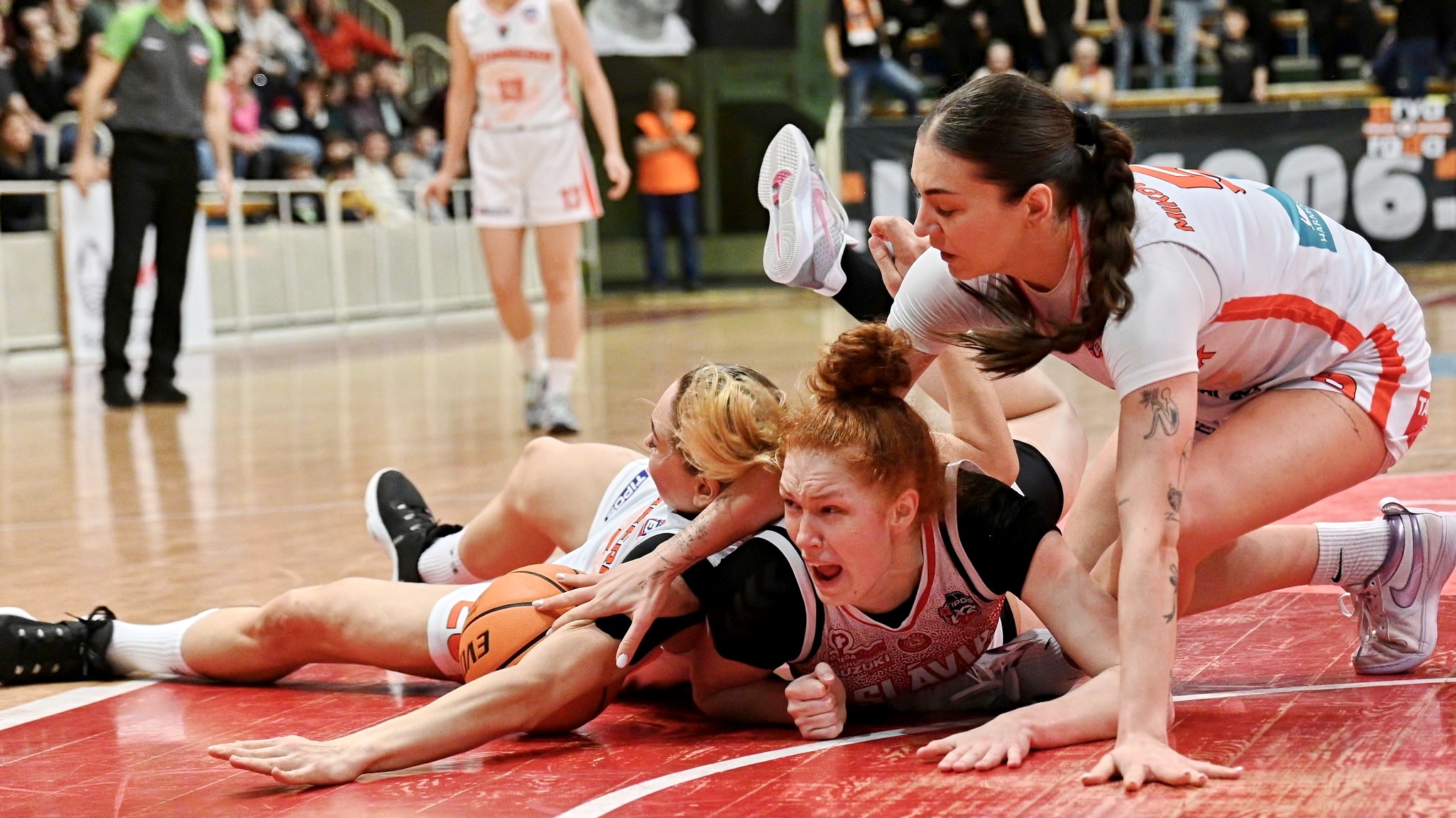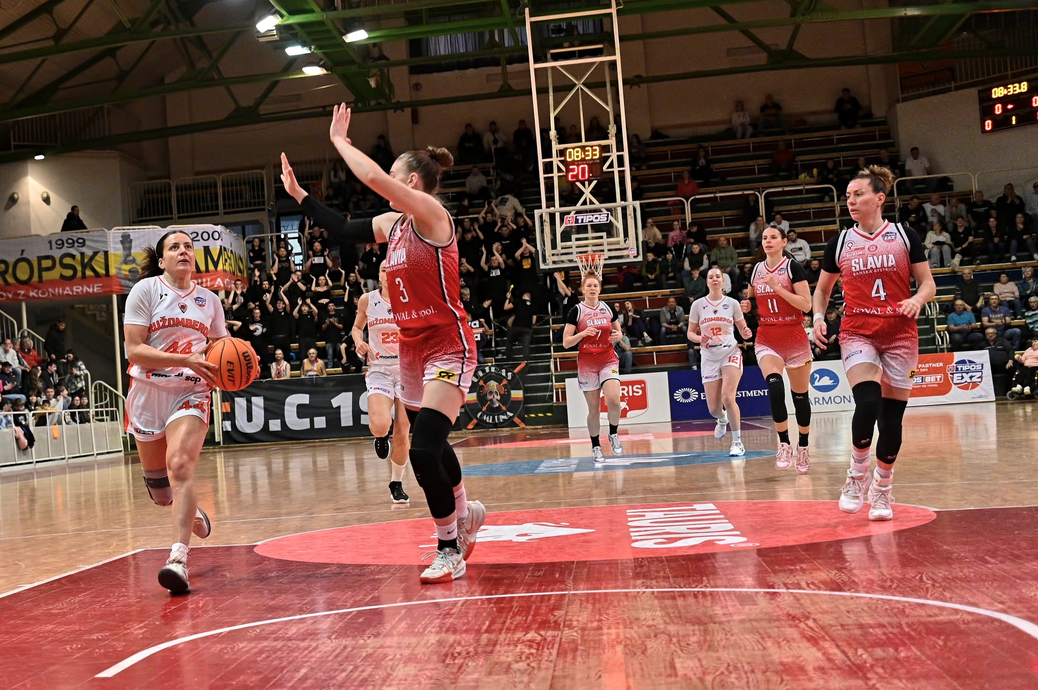 Slávia: Striešová 21, Pinzan 16, Chovaníková 13, Žilinská 8, Užovičová 8 (Podhradská 4, Nigutová 2, Janštová 0). Vyfaulovaná: 40. Žilinská.