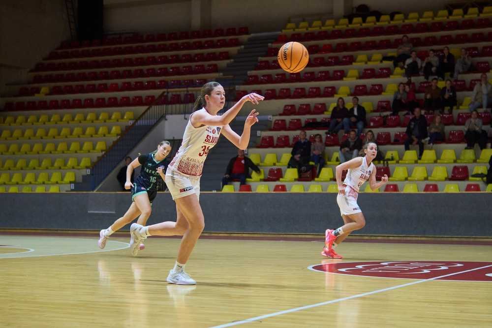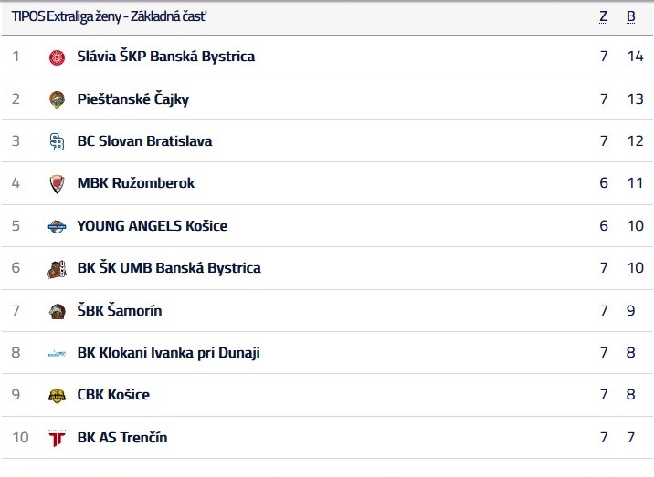 Basketbalistky Slávie Banská Bystrica vyhrali aj siedmy zápas v ženskej extralige a po prehre Piešťan v Ružomberku zostávajú jediným nezdolaným tímom v súťaži. Na domácej palubovke v sobotu večer potvrdili rolu favorita a Trenčín pokorili rozdielom triedy 112:33. Štvrtýkrát v aktuálnej extraligovej sezóne prekonali sto bodovú hranicu a dostali sa na prvé miesto v tabuľke.