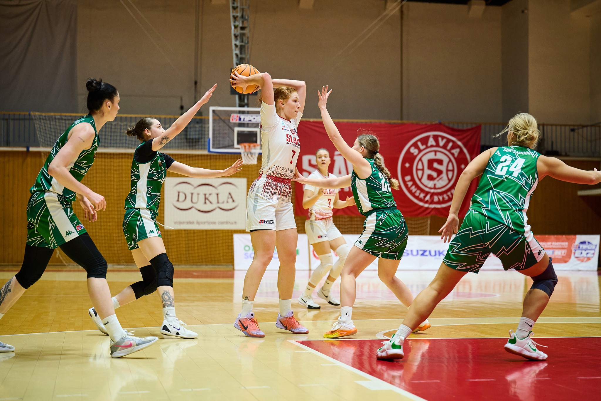 Slávia: Užovičová 18, Striešová 10, Chovaníková 10, Pinzanová 5, Žilinská 2 + 9 doskokov (Janštová 11, Vigašová 10, Jarošová 9, Urbanová 8, da Cruz 8, Nigutová 4, Tomajková 3)