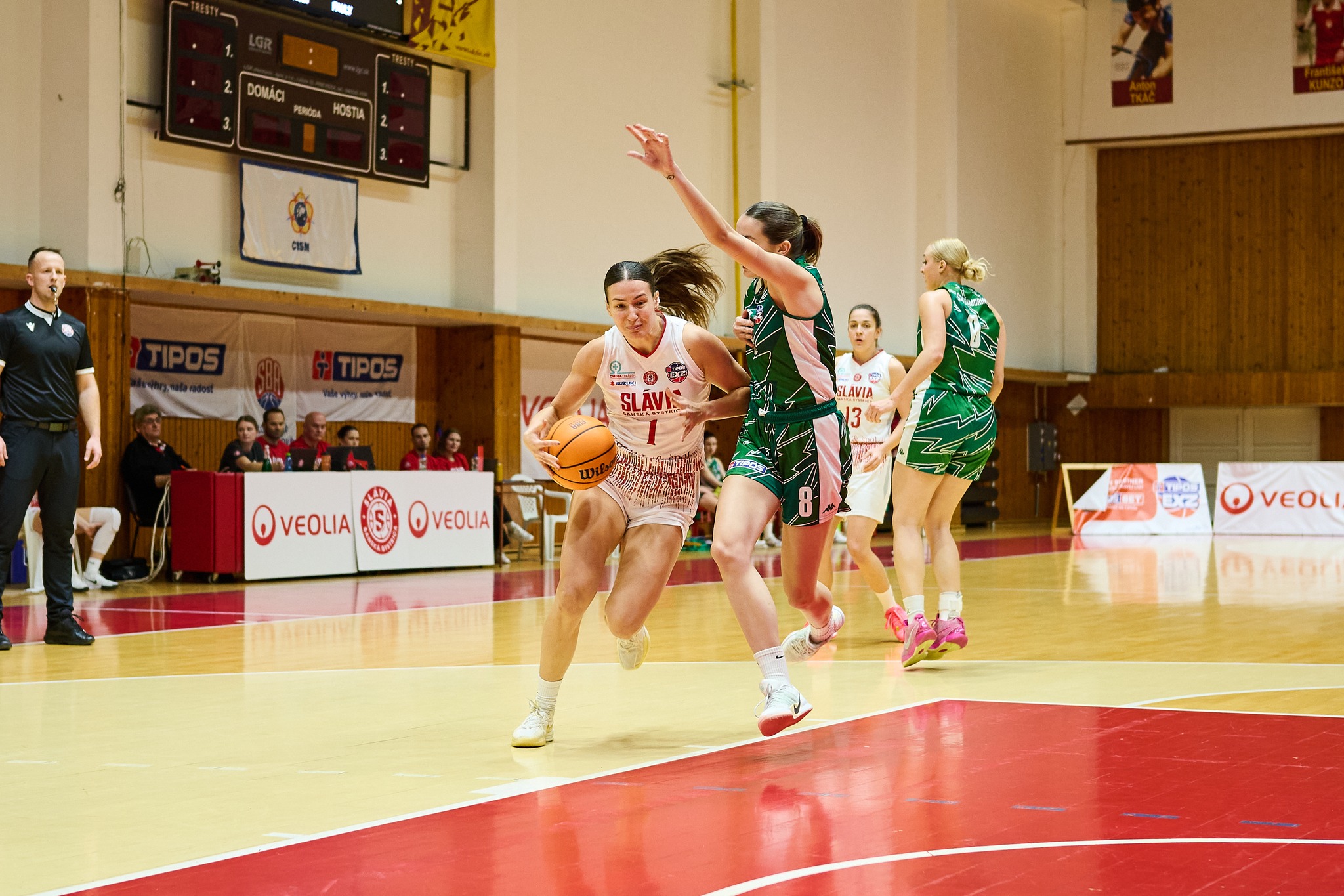 Šamorín kládol v Banskej Bystrici proti Slávii tuhú odpor, no vydržalo mu to len jednu štvrtinu. Vyhral ju prekvapujúco o bod – 20:21, keď využíval najmä chyby domácich hráčok a padalo mu to do koša. Druhá štvrtina už patrila favoritovi zápasu spod Urpína. Ten dovolil súperkám zaknihovať iba jeden jediný kôš v 16. minúte, keď Slamová znižovala na 27:23. Potom sa už presadzovali iba ´pumy´, nastrieľali osemnásť bodov v rade, vďaka čomu vyhrali polčas o jasných 22 bodov – 45:23.