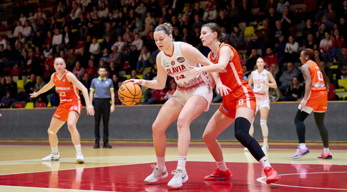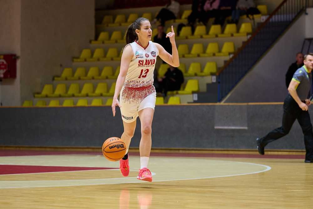 Slávia: Chovaníková 22 (1), Urbanová 15 (2), Calloway 8 (2), McGruder 7, Tulonen 4 (da Cruz 9, Striešová 4, Jarošová 3 (1), Janštová 0, Nigutová 0, Žilinská 0), vyfaulovaná: Striešová (43. min).