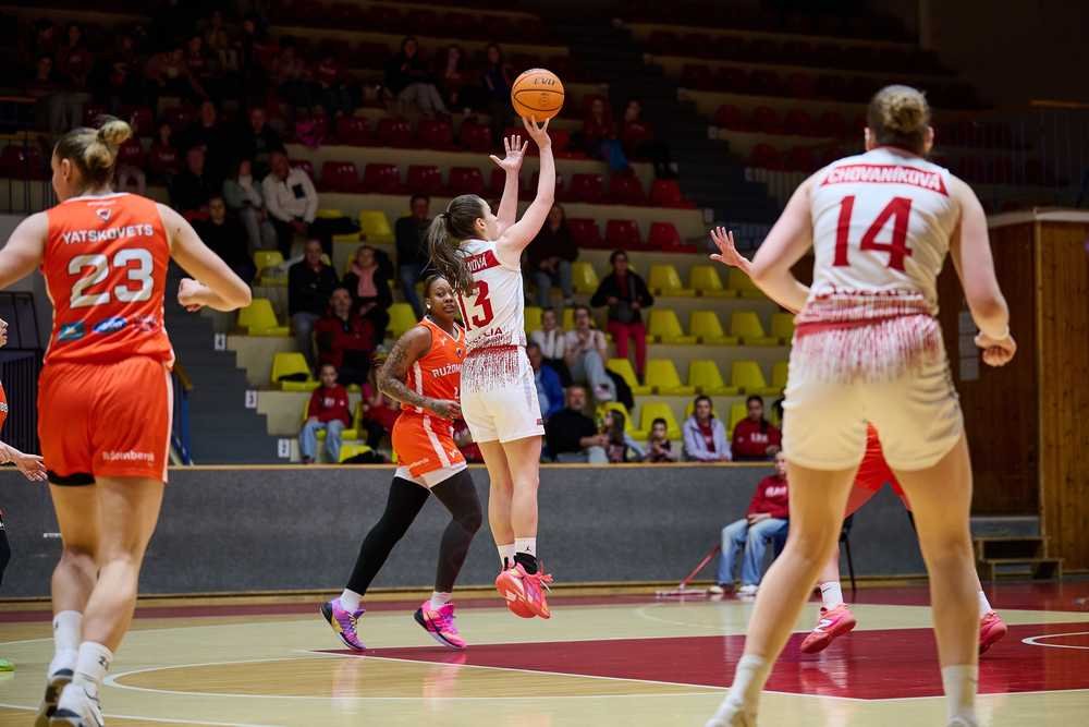 Ruža: Yatskovets 35 (2), Smith 11, Šedivá 8, Andělová 5, Kraislová 0 (Živaljević 12 (2), Kaliuzhna 4, Ďuratná 2, Štefančová 2, Mikovčáková 0), vyfaulovaná: Kraislová (45. min).