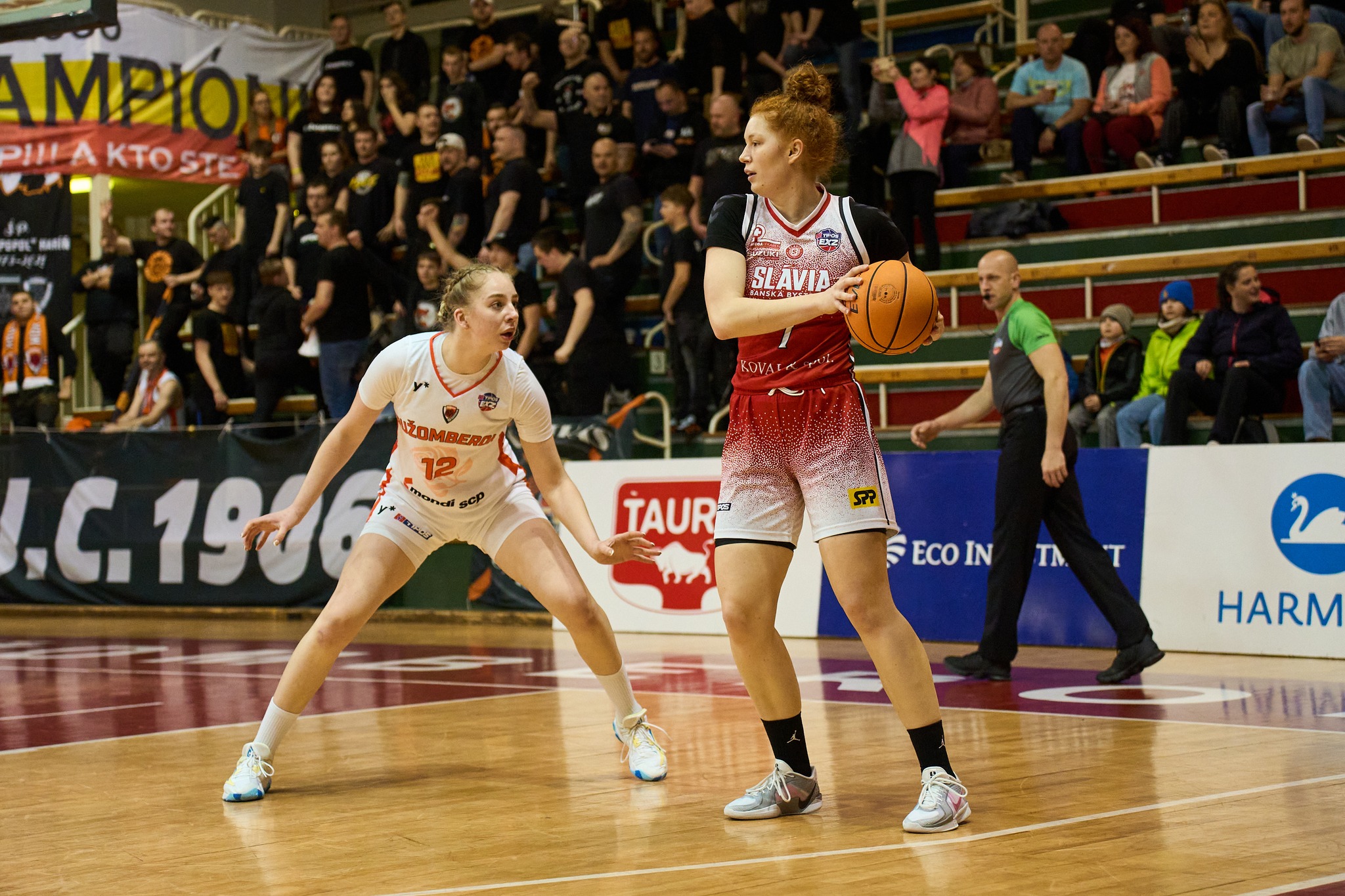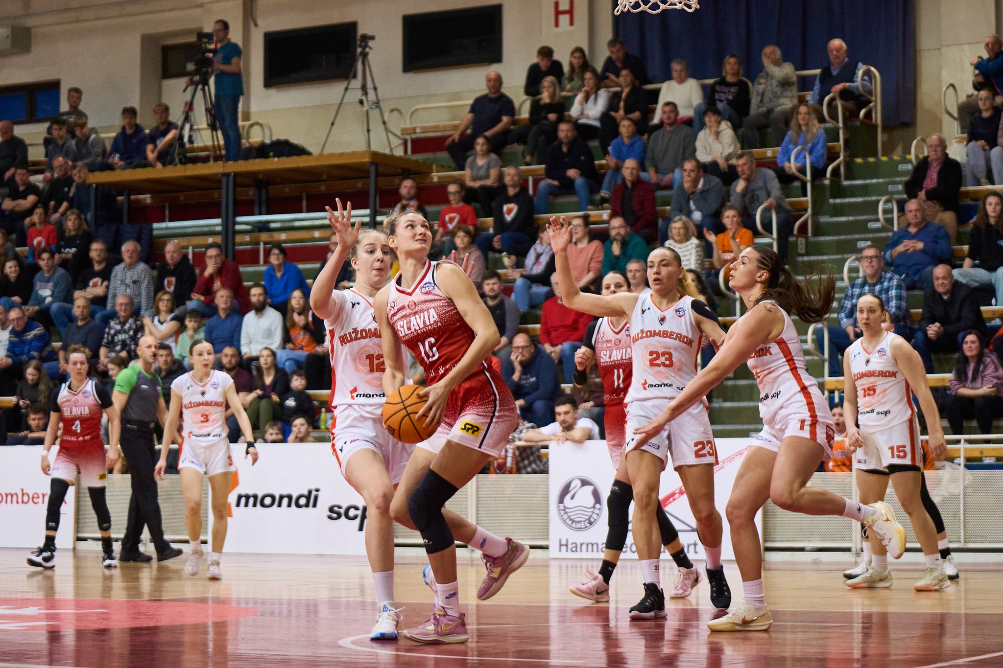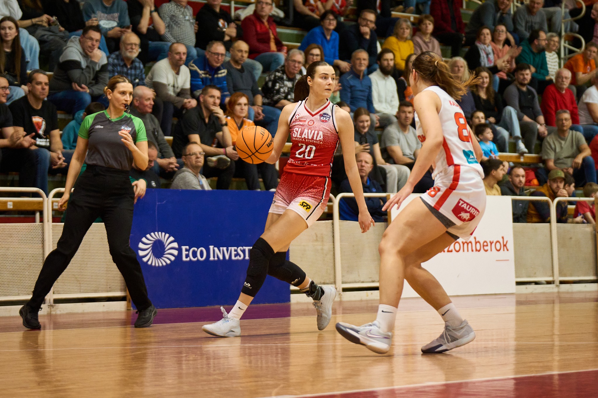 Slávia: Pinzan 16, Striešová (C) 12, Žilinská 11/14 doskokov, Užovičová 10, Chovaníková 0 (Podhradská 2, Nigutová 2, Janštová 0).