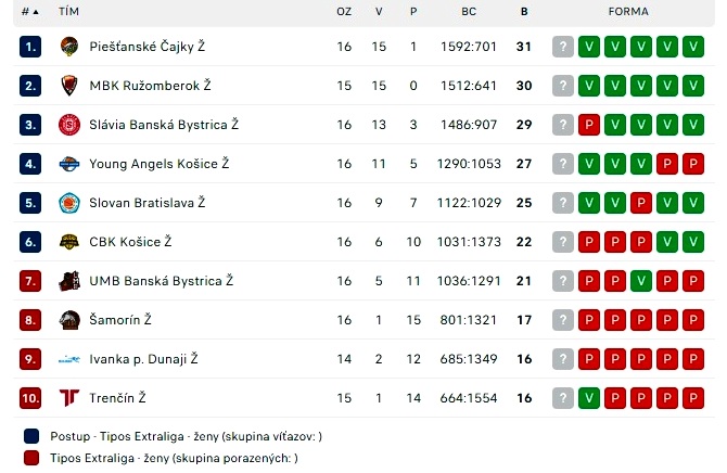 Slávia: Žilinská 28, Užovičová 12, Chovaníková 9, Pinzan 8, Striešová 4 (Podhradská 9, Nigutová 2, Malková 0, Vigašová 0).