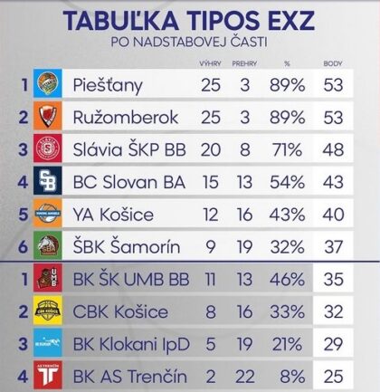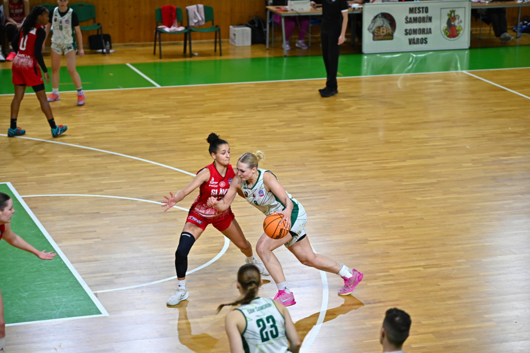 Basketbalistky Slávie Banská Bystrica sa v poslednom desiatom kole nadstavbovej časti ženskej extraligy v skupine o 1. až 6. miesto predstavili na palubovke Šamorína a vyhrali tam takmer o 40 bodov – 92:53. Do semifinále play off idú teda z tretieho miesta a sily si zmerajú s Ružomberkom. Séria sa hrá na tri víťazstvá.