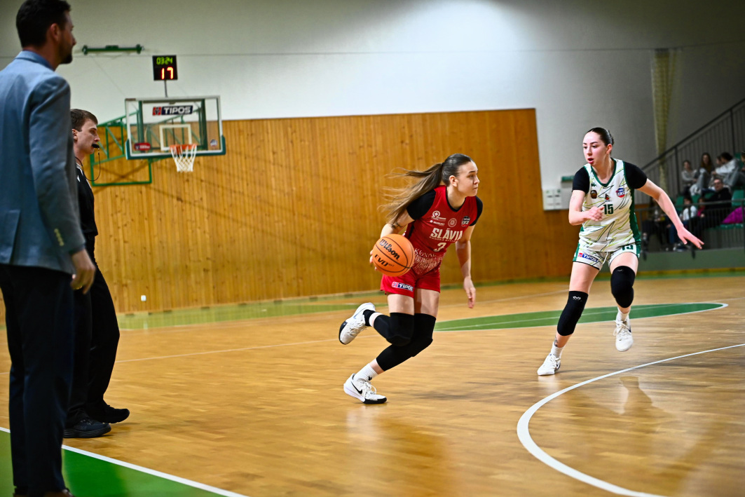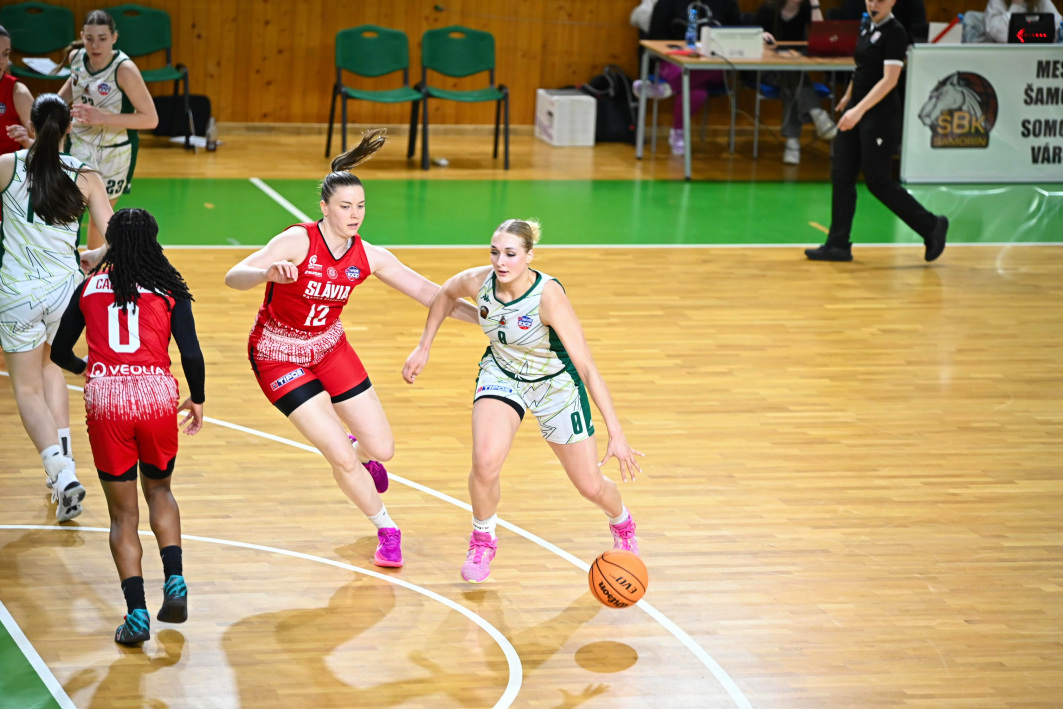 Slávia: McGruder 17, Tulonen 10, Urbanová 9 (1), Jarošová 4, Calloway 3 (1) (Chovaníková 14 (2), Žilinská 13, Striešová 8, Užovičová 6 (1), da Cruz 6, Janštová 2). Tréner: Kucsa.