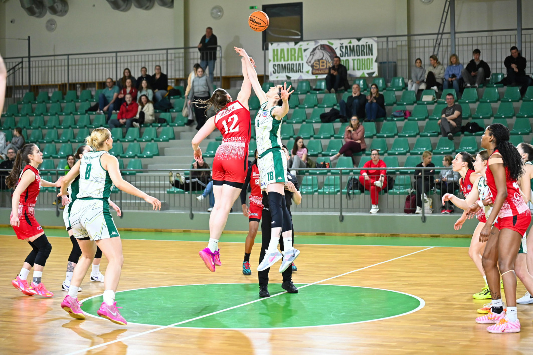 Štvrtiny: 7:20, 13:25, 13:24, 20:23. Rozhodovali: Valachovič, Enekeš, Galádová. TH: 8/12 (67 %) – 9/10 (90 %), trojky: 7 – 5, doskoky: 24 – 46, zisky: 2 – 11, asistencie: 8 – 20, bloky: 0 – 1, straty: 20 – 9, fauly: 12 – 19, streľba z poľa: 19/51 (37 %) – 39/76 (51 %). Diváci: neuvedené.