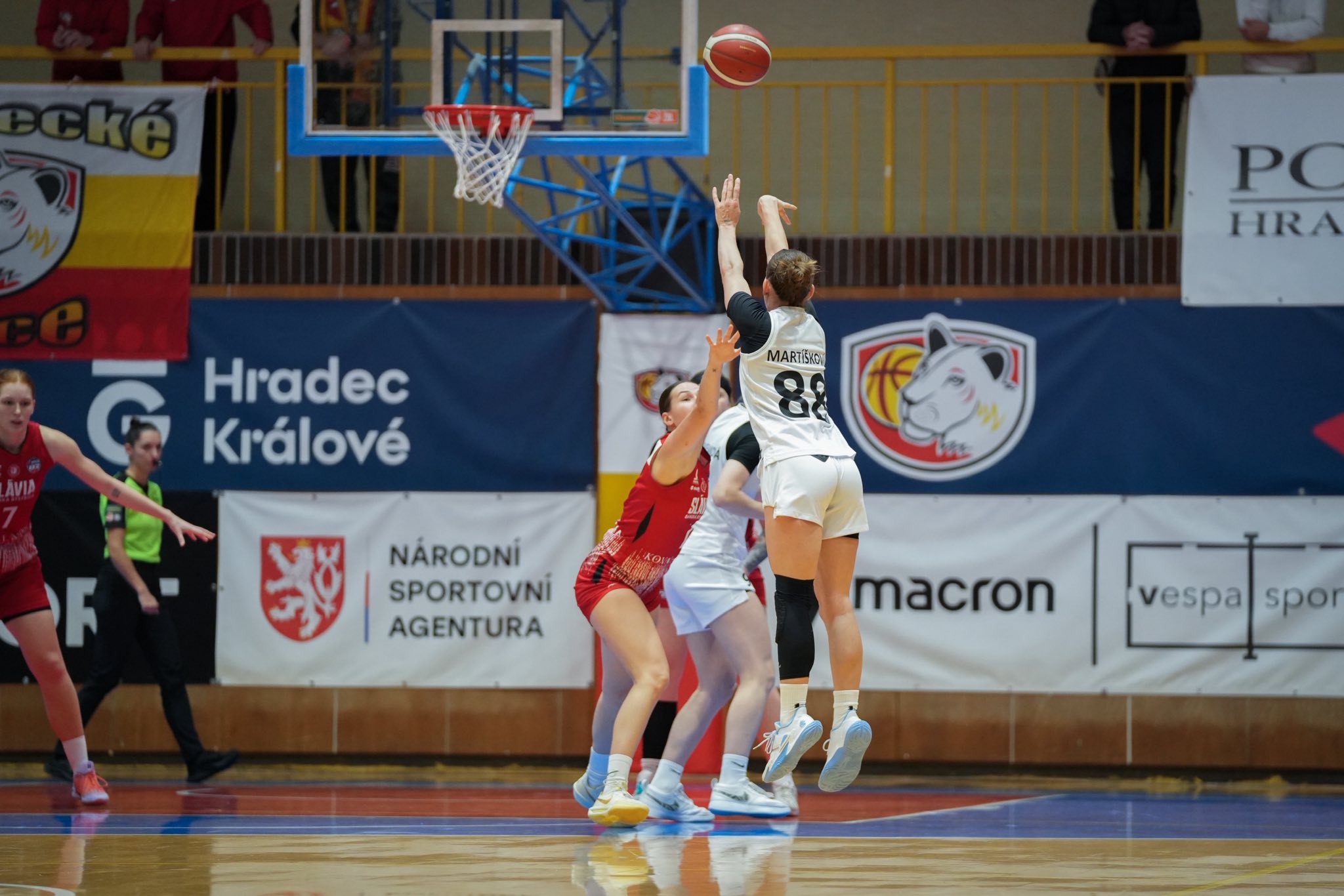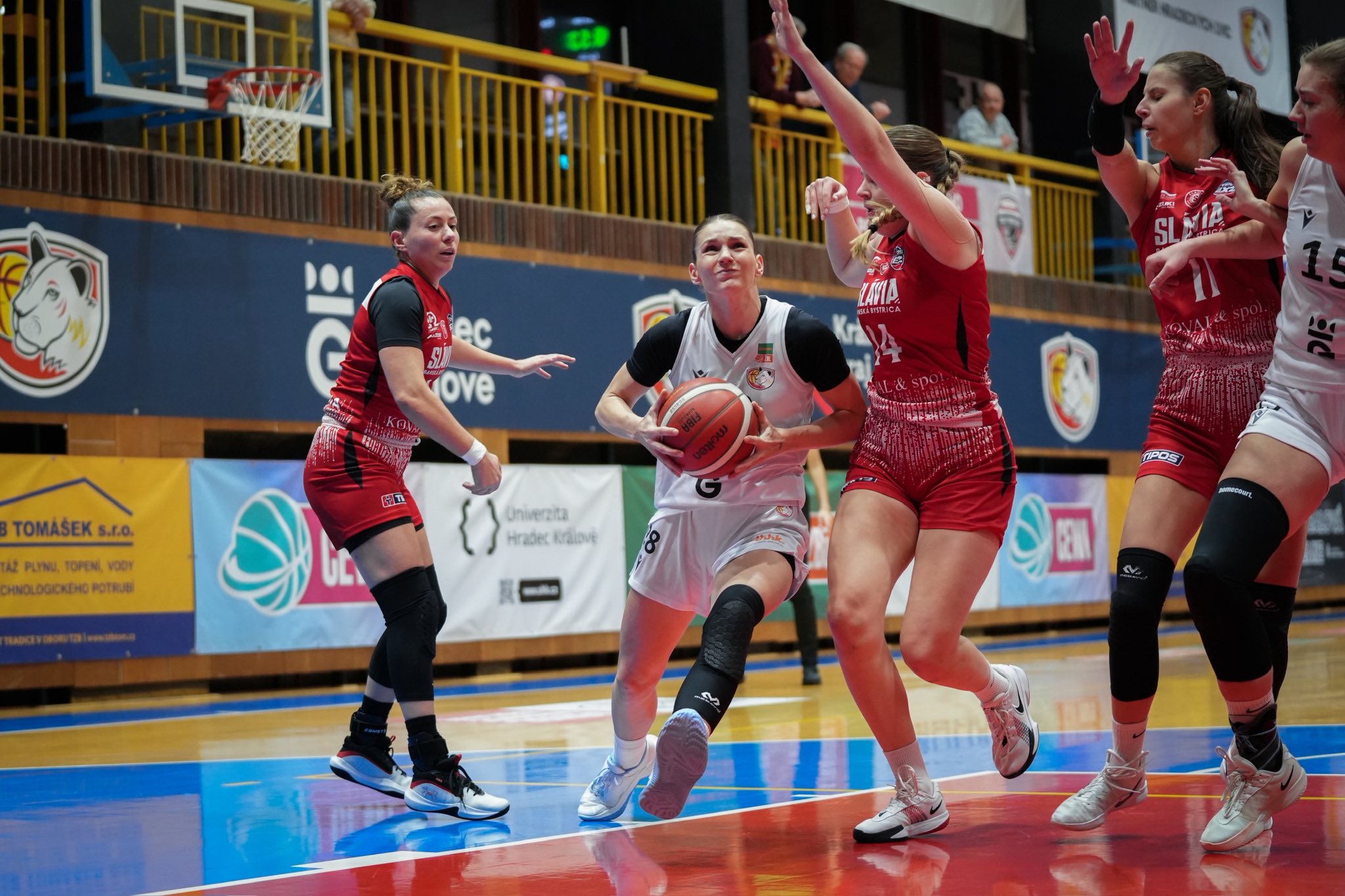 Duel medzi domácim Sokolom Hradec KrálovéSláviou Banská Bystrica priniesol útočný basketbal z oboch strán. Pumy doplatili na vysoký počet strát a horšiu úspešnosť streľby v rozhodujúcich momentoch. Slávia vstúpila do súboja odvážne a v prvej štvrtine držala krok, ale domáce hráčky si v druhej časti vybudovali dvanásťbodový náskok (47:35). Banskobystričanky sa nevzdávali – v tretej štvrtine zrýchlili hru, zlepšili streľbu spoza perimetra a dokázali sa dostať do jednobodového vedenia (61:62), avšak domáce levice do konca štvrtiny ušli na rozdiel štyroch bodov (68:64). V záverečnej desaťminútovke sa pumy ešte raz dostali do vedenia (70:72), avšak Sokol ukázal väčšiu koncentráciu aj širšiu rotáciu. Profitoval zo získaných lôpt (12:5) a Slávii sa vypomstilo až 21 strát. Domácim hráčkam vychádzala najmä streľba z poľa (49 %), čo v kombinácii s rýchlym prechodom do útoku znamenalo definitívny zlom v zápase v podobe konečeného výsledku 96:82.