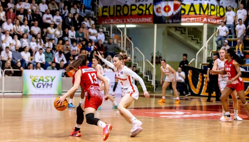 Štvrtiny: 22:24, 20:9, 17:12, 29:17. Rozhodovali: Margala, Uhrin, Perečinská. TH: 19/23 (83 %) – 8/10 (80 %), trojky: 11 – 6, doskoky: 48 – 24, zisky: 5 – 6, asistencie: 19 – 14, bloky: 4 – 0, straty: 13 – 9, fauly: 18 – 24, streľba z poľa: 29/63 (46 %) – 24/62 (39 %). Diváci: 790.