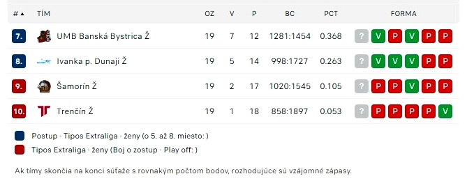 V 1. kole nadstavbovej časti basketbalovej Tipos extraligy žien v skupine o 7. až 10. miesto zvíťazil BK ŠK UMB Banská Bystrica na domácej palubovke nad posledným BK AS Trenčín rozdielom triedy 103:37. Stobodovú hranicu pokorili ´sovičky´ necelú minútu a pol pred koncom duelu. Ten jednoznačne ovládli už v prvom polčase, výpadok mali iba vo vyrovnanej tretej štvrtine.