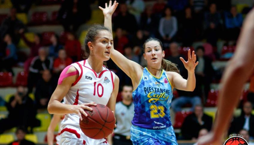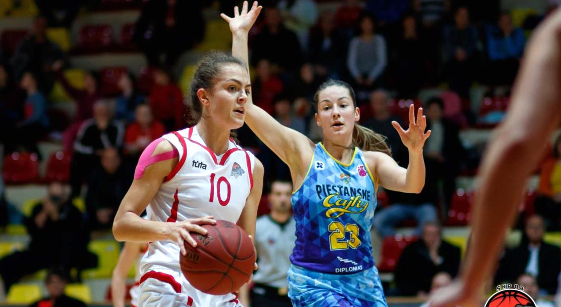 Najviac bodov Piešťany: Zohnová 27 /5/, T. Páleníková 19 /3/ a Jakubcová 17.
