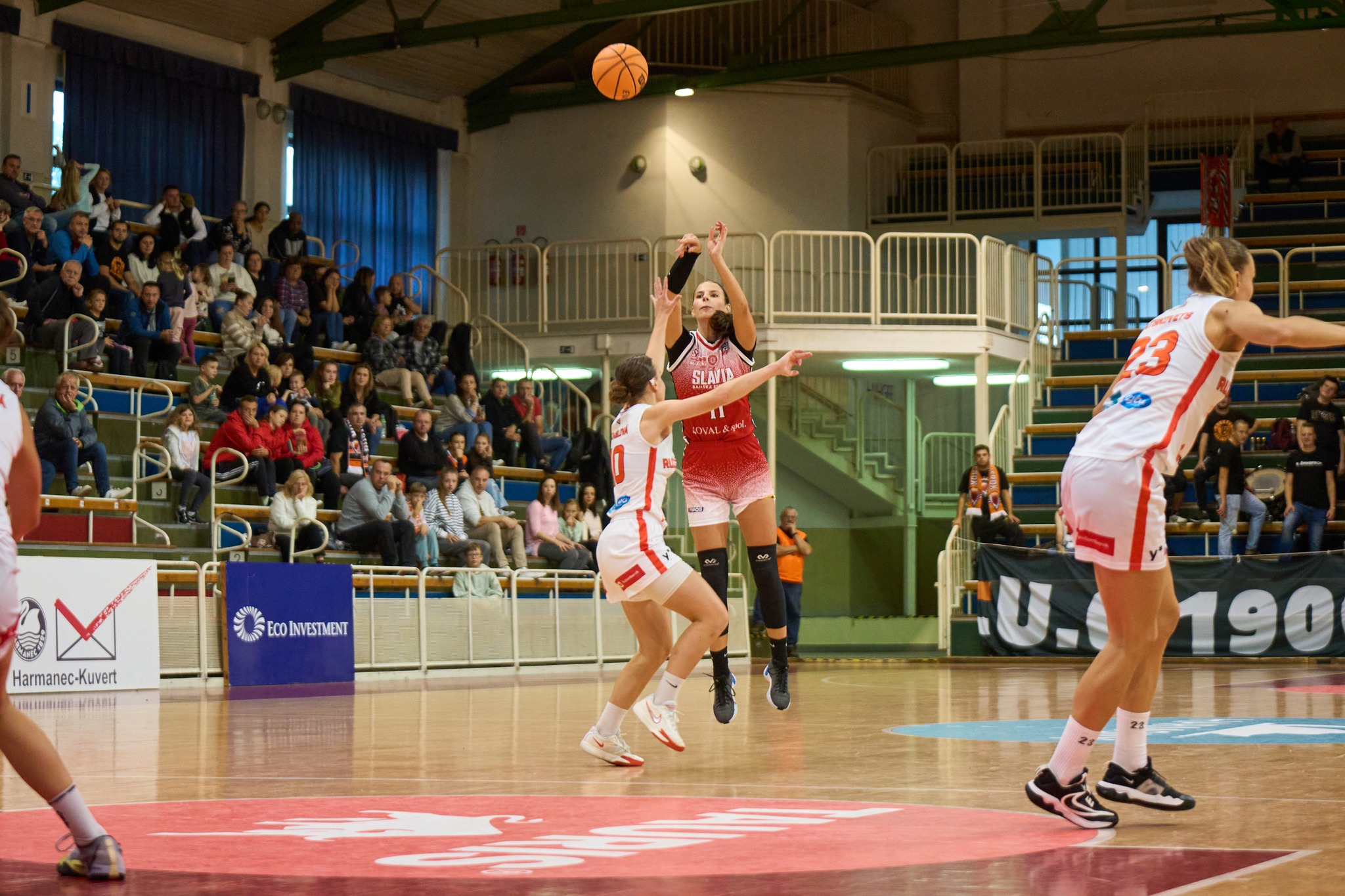 Slávistky v treťom zápase CEWL podľahli domácemu Ružomberku. So silným súperom však odohrali solídnu partiu, po prvej štvrtine viedli a v štvrtej platil nakrátko vyrovnaný stav. Liptáčky oba svoje úvodné duely v CEWL vyhrali. Úvod stretnutia patril bystrickému tímu, keď aj vďaka trojkám Liany Užovičovej, Radoslavy Nigutovej a Lucie Striešovej viedol 16:12. Domáce stratu stiahli, ale pumy aspoň o jeden bodík prvú štvrtinu vyhrali – 16:17. Ružomberok sa hneď v úvode druhej desaťminútovky dostal na koňa a na začiatku 18. minúty viedol po prvýkrát dvojciferným rozdielom – 32:21. Vďaka druhej trojke Striešovej a košu Niny Janštovej hostky priebežný stav skorigovali na polčasových 34:26. V prvom polčase mali družstvá rovnaký počet pokusov z poľa s identickou úspešnosťou, ale hráčky Ružomberka si k vedeniu pomohli trestnými hodmi.