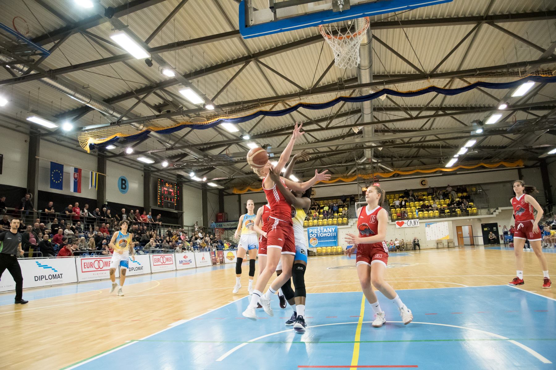 Piešťanské Čajky: Lubin 21 /10 doskokov/, Jakubcová 20 /11 doskokov/, Thompson 13, Engelman 9, Hašková 6 (Matejčíková 15 /4 trojky/, Krč-Turbová 9, Baburová 4, Dovčíková 3, Mihaljevičová 2, Bábiková 2). Tréner: R. Kucsa.