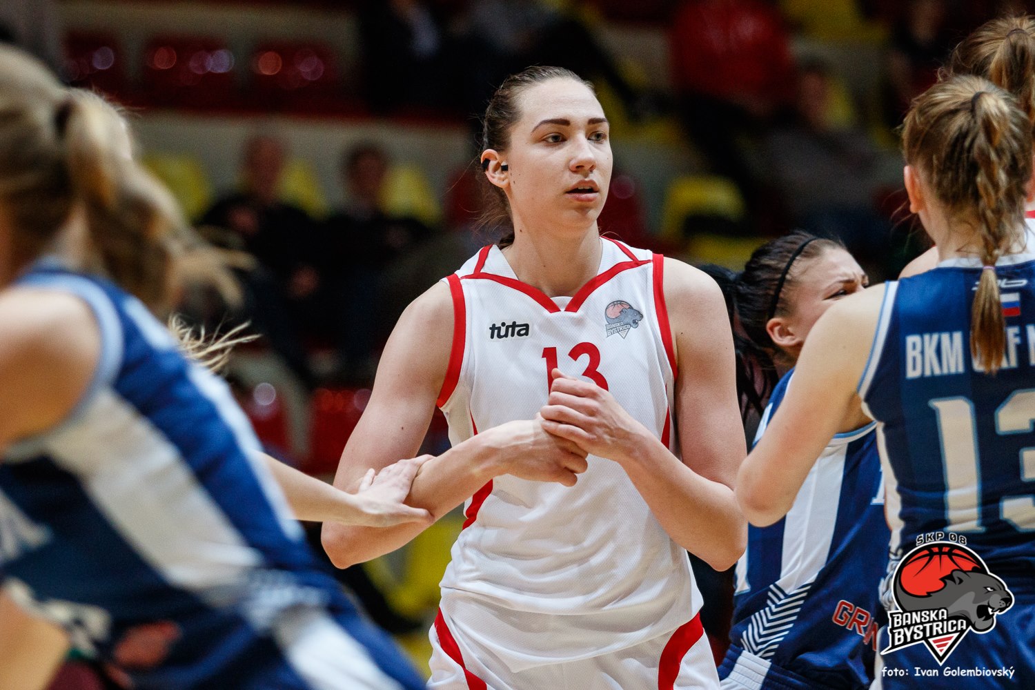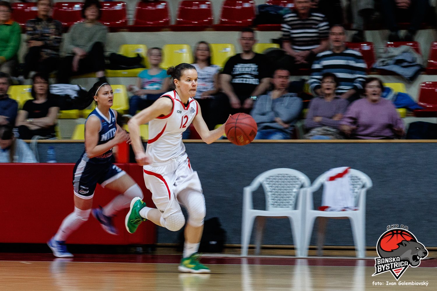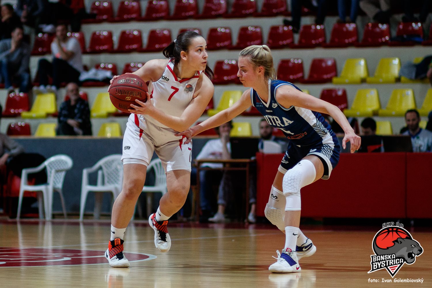 V prvej štvrtine sa oba tímy striedali vo vedení, Bystričanky viedli najviac o dva body, Nitranky o tri, pretože sa dvakrát presadili aj spoza veľkého oblúka. Do druhej desaťminútovky sa išlo za nerozhodného stavu 17:17, ale v jej úvode po trojke Sailerovej a dvojke Babaríkovej sme prehrávali o päť bodov 17:22. Trojkou odpovedala naša Kozáková, ale potom prišla hluchšia štvorminútová pasáž z bystrickej strany a súper toho využil, išiel do vedenia 20:28! Po trestných hodoch Jassovej a koši Ozdincovej sme v 18. minúte znížili na rozdiel dvoch bodov, ale posledné slovo pred polčasom mala hosťujúca Horvátová, takže na veľkú prestávku išli družstvá za stavu 28:32.