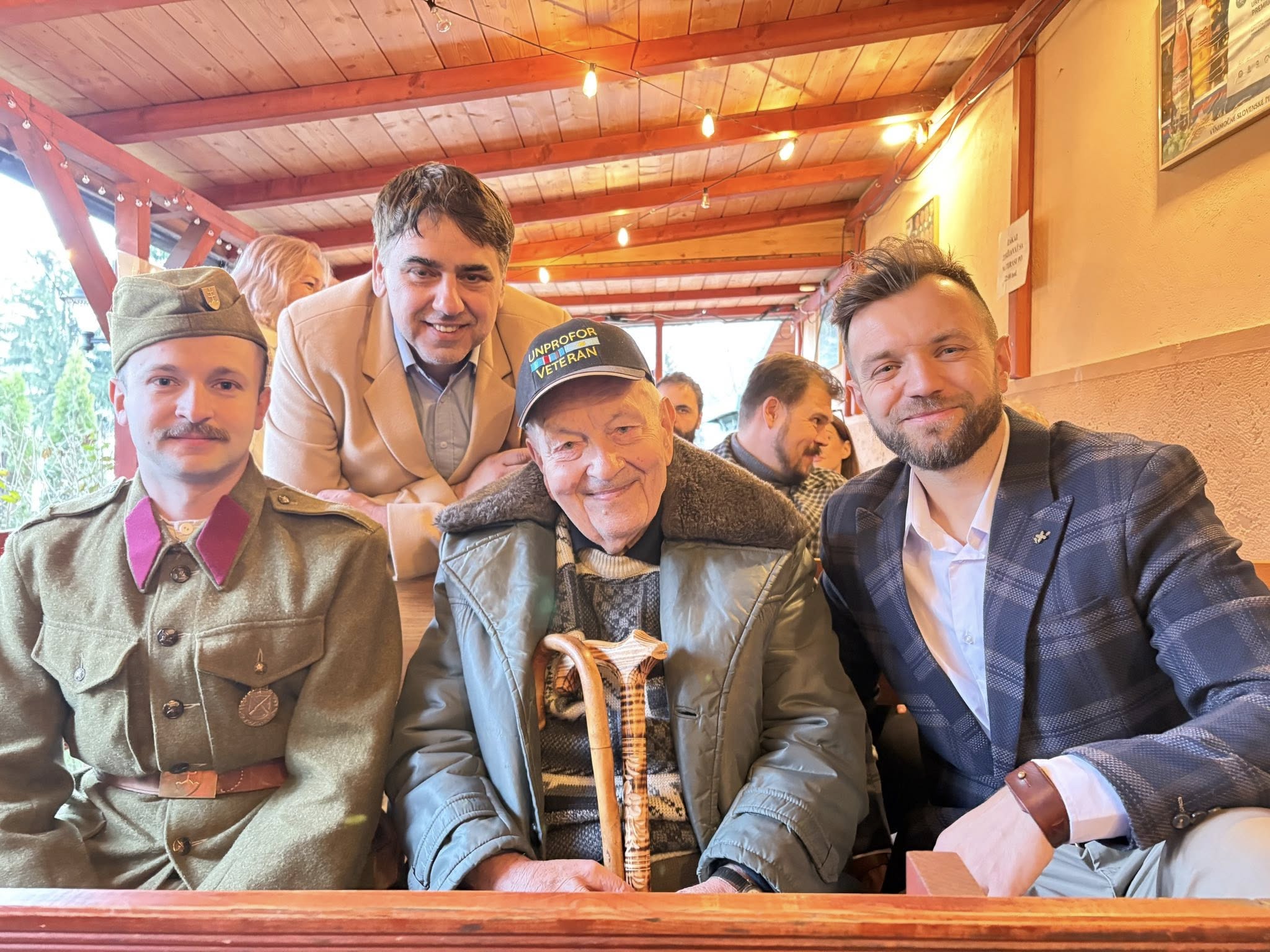 Najvzácnejšie okamihy večera však patrili tým, ktorí dejiny nesú vo svojom srdci. Pán Vladimír Strmeň, priamy účastník odboja a človek s nehasnúcim optimizmom, sa podelil o svoje osobné posolstvo. Jeho prítomnosť bola pre všetkých zúčastnených živým mostom k minulosti, ktorý nás učí pokore a odvahe.