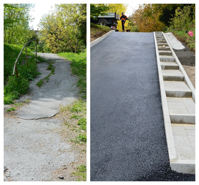 Opravili sme chodník na ulici 9. mája od križovatky s ulicou Pod Urpínom po ulicu Na Uhlisku, a tiež chodník na Golianovej ulici od križovatky s ulicou 9. mája po Jesenského ulicu.
