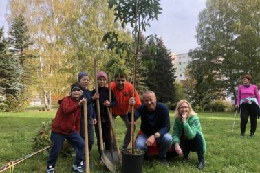 Ján Nosko s dobrovoľníkmi pri výsadbe stromov