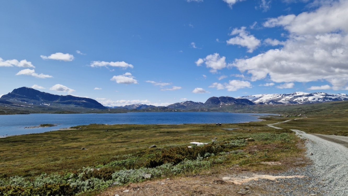 Skratkou cez hory sme sa dostali na hlavnú cestu v oblasti jazera Bygdin pod majestátnym vrcholom Bittihorn, na ktorý vedú viaceré trasy rôznej obtiažnosti. Dlho sme sa na nej neohriali, lebo o pár kilometrov ďalej odbočuje doprava slávna Jotunheimvegen. Ide o 45 kilometrov dlhú cestu časťou národného parku Jotunheimen, najvyššieho horského masívu celej Škandinávie.