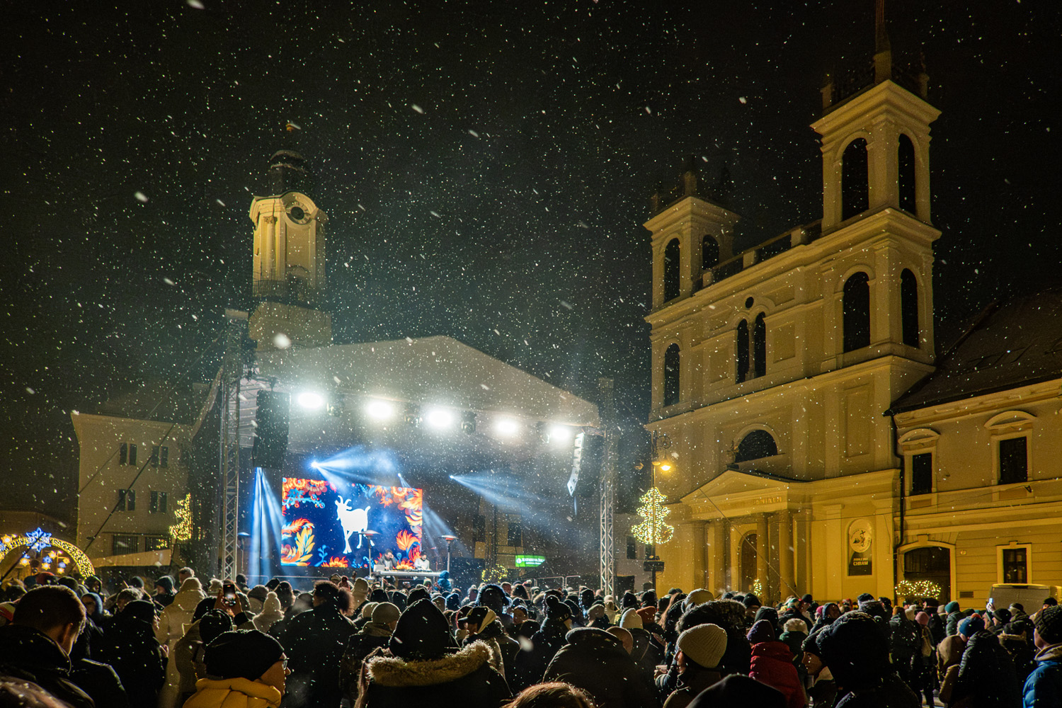 Banskobystrické centrálne námestie sa hodinu pred polnocou zaplnilo na Silvestra množstvom ľudí, ktorí sa veselo rozlúčili s odchádzajúcim rokom pri hudobnom programe trvajúcom až do 1:30 hod. už Nového roka.
