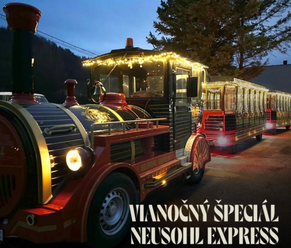„Po rozsvietení vianočného stromčeka pozývame všetkých na špeciálnu jazdu vysvieteným vláčikom Neusohl Express. Prvá jazda sa začne o 17:45 hod., druhá o 18:00 hod. Vláčik vyštartuje z Námestia Štefana Moysesa, zo zastávky MHD pred budovou Slovenskej pošty. Pokračovať bude Hornou, Kukučínovou, Skuteckého a Komenského ulicou. Vianočný špeciál si budú môcť vychutnať cestujúci zadarmo. Príďte si užiť sviatočný večer. Tešíme sa na vás,“