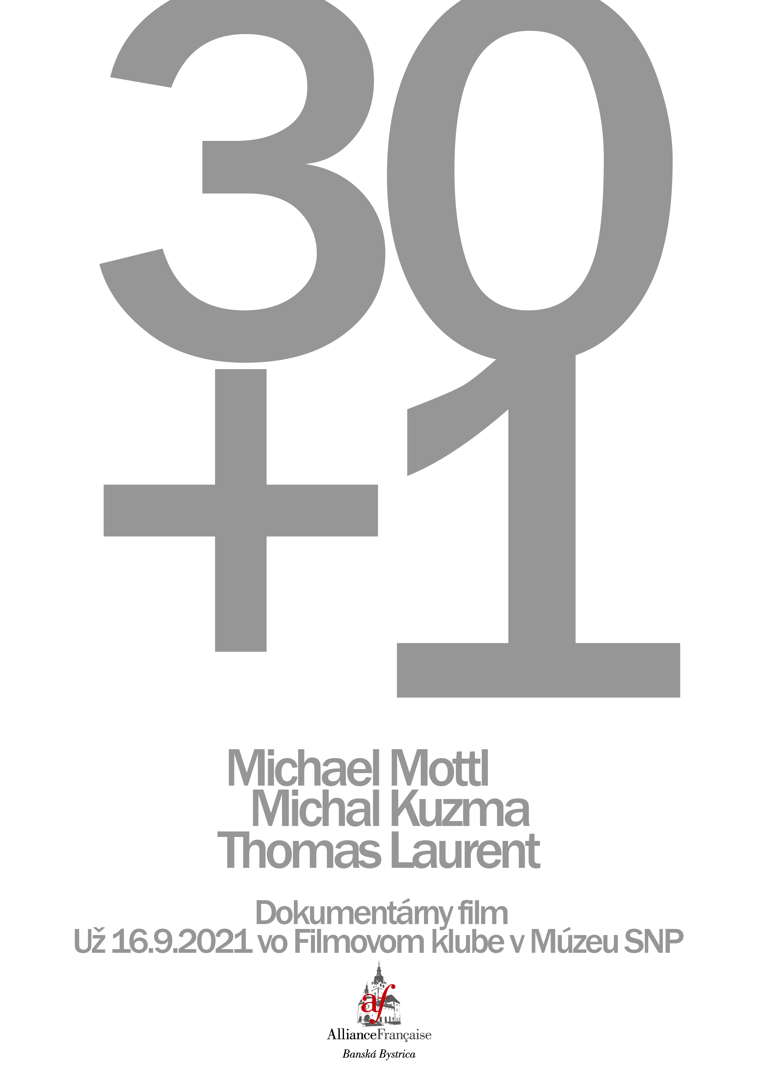 Iba pripomíname, že dokument „30+1“ uvedie trojica jeho tvorcov Michal Mottl, Michal Kuzma a Thomas Laurent vo štvrtok 16. septembra 2021 vo Filmovom klube v Múzeu SNP.