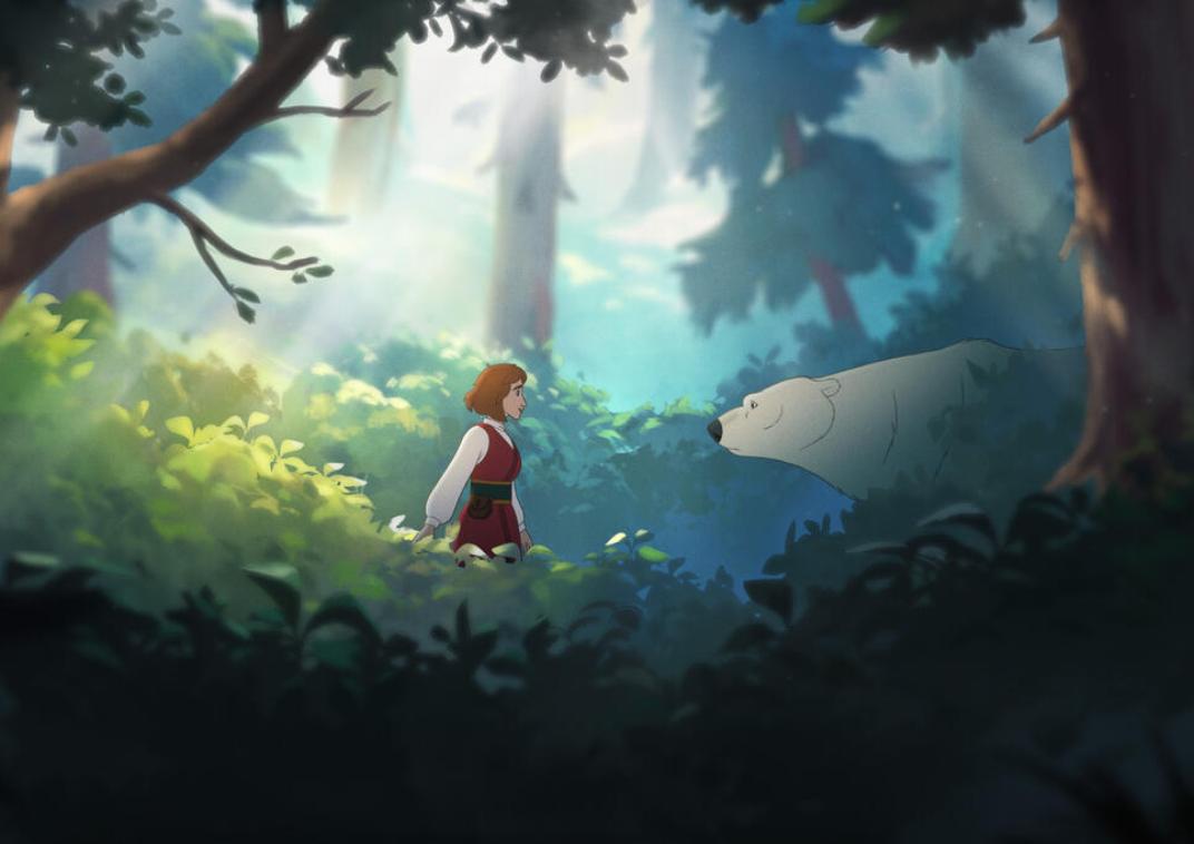Animovaný dobrodružný film. Nórsko 85 minút. Nebojácne a zvedavé dievča s dobrodružnou dušou Liv sníva o tom, že opustí svoj domov v lesoch. Keď ľadový medveď Valemon ponúkne jej rodine cestu von z chudoby, pokiaľ s ním odíde, Liv súhlasí. Medzi dievčaťom a medveďom sa začína rodiť súcitné priateľstvo, ktoré by sa mohlo premeniť na niečo hlbšie.