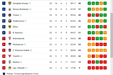 V poslednom 22. kole základnej časti futbalovej Fortuna ligy banskobystrická Dukla vyhrala po nepresvedčivom výkone v Skalici 2:1 a keďže Ružomberok doma podľahol lídrovi z Dunajskej Stredy, tím spod Urpína obsadil šiestu priečku a splnil tak predsezónny cieľ – záchranu v najvyššej súťaži aj s bonusom, že si napokon zahrá nadstavbovú časť v skupine o titul.