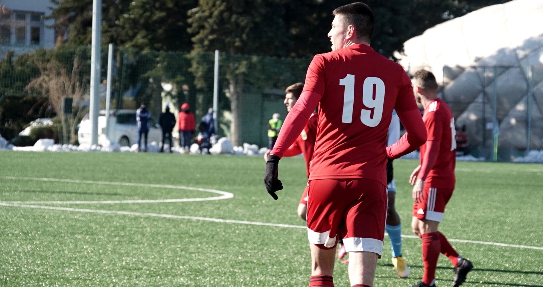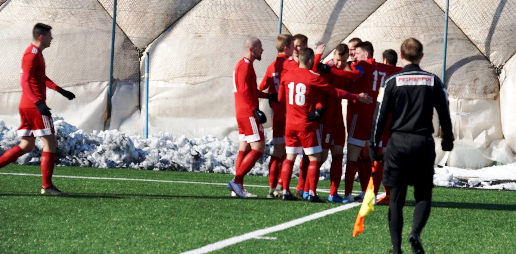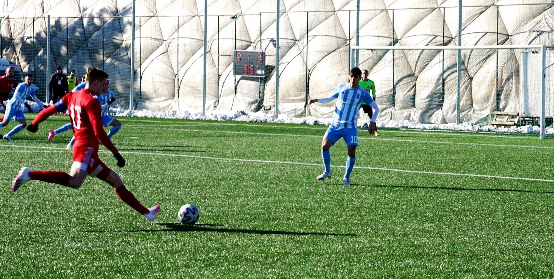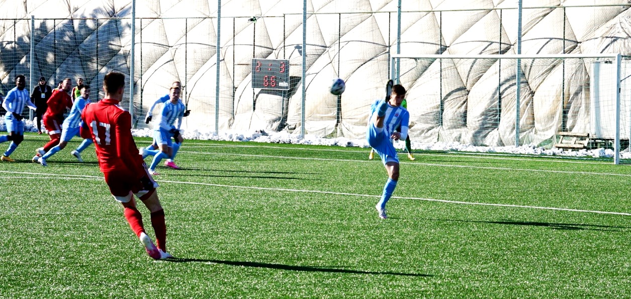 Umelý trávnik na bývalom štadióne Rapidu v Ružinove bol vo výbornom stave, ale hralo sa za mrazivého, hoc slnečného počasia pri teplote nula stupňov. Domáci išli rýchlo do vedenia, keď sa presadil z pravej strany v tretej minúte peknou strelou zblízka pod brvno k bližšej žrdi Medvědev 1:0. Následne sme mali príležitosti, najmä Polievka, ale chýbala presnejšia koncovka. Na úvodný zásah súpera sme odpovedali v trinástej minúte po rohu Polievku Matejom Starším hlavou, ale vyrovnávajúci stav 1:1 dlho netrval, pretože o päť minút na to Ratao peknou umiestnenou strelou z hranice šestnástky do vinkla menil stav na 2:1. Hruška bol bezmocný. Ubehli však iba dve minúty a my sme sa opäť tešili z vyrovnania. Po prihrávke Migaľu Lukáš Laksík predviedol v šestnástke parádne nožničky cez hlavu a bolo 2:2. Pokým sa bystrickí futbalisti prezentovali technickým futbalom, snažili sa o útočnú a kombinačnú hru, domáci im to znepríjemňovali tvrdou hrou na hranici pravidiel. Rozhodca Kišš veľa faulov prehliadal a neuznal nám gól pred polčasom, keď loptu z dorážky poslal medzi žrde znovu Laksík. Mal tomu totiž predchádzať diskutabilný faul Prikryla vo výskoku.