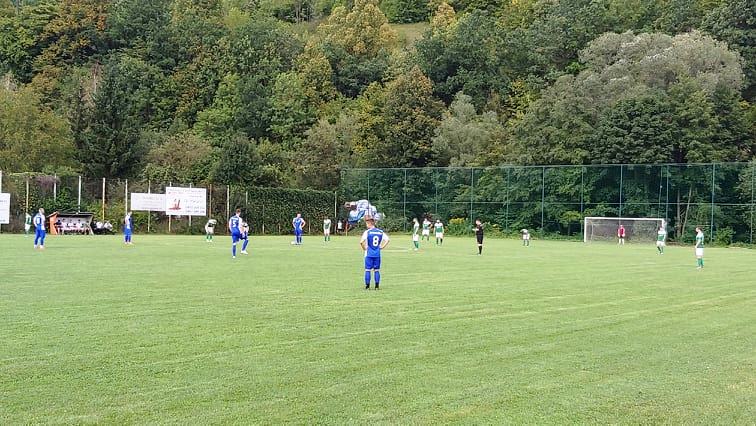 Úvod stretnutia patril Detve. Vytvorila si územnú prevahu, bola viac na lopte, strieľala na bránku, no nepresne. Konkrétne sa o to snažili Odzgan a Tužinský, obaja mierili nad brvno. Na domácej strane to skúšal z väčšej vzdialenosti Kútik, Packo si so skákajúcou loptou poradil. Prišla však dvadsiata minúta a štandardka Jakuba. Z priameho kopu poslal center pred bránku Kútik, gólman Detvy loptu vyrazil a od jeho spoluhráča Sekereša putovala nešťastne za jeho chrbát do bránky – 1:0. Tento smolný okamih hostí rozhodil, naše mužstvo ožilo, dostávalo sa do šestnástky. Kombinácia Pánika s Čiefom ešte gólom neskončila, hoci Pánik mohol strieľať než prihrávať a bol by z toho azda presný zásah, mrzieť ho to však nemuselo, pretože v tridsiatej minúte po prihrávke Vajdu sa presadil peknou strelou po zemi Robert Kútik – 2:0. O malú chvíľu po rohu Vajdu zakončoval Čief, Packo loptu znovu vyrážal a v trme – vrme zahral rukou v pokutovom území jeden z hráčov Detvy. Nasledovala penalta, ktorú Robert Kútik bezpečne premenil – 3:0. Hostia v závere polčasu znovu pohrozili, nebezpečná bola najmä hlavička Sekereša, gólman Kučera bol na mieste a dve strely z väčších vzdialeností nemusel riešiť, pretože boli nepresné.