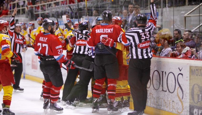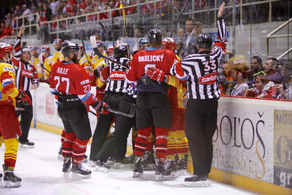 Rozhodovali: Baluška, Štefik – R. Výleta, Šefčík, vylúčení na 2.min: 4:7, presilovky: 0:1, oslabenia: 0:0, 2841 divákov (vypredané).