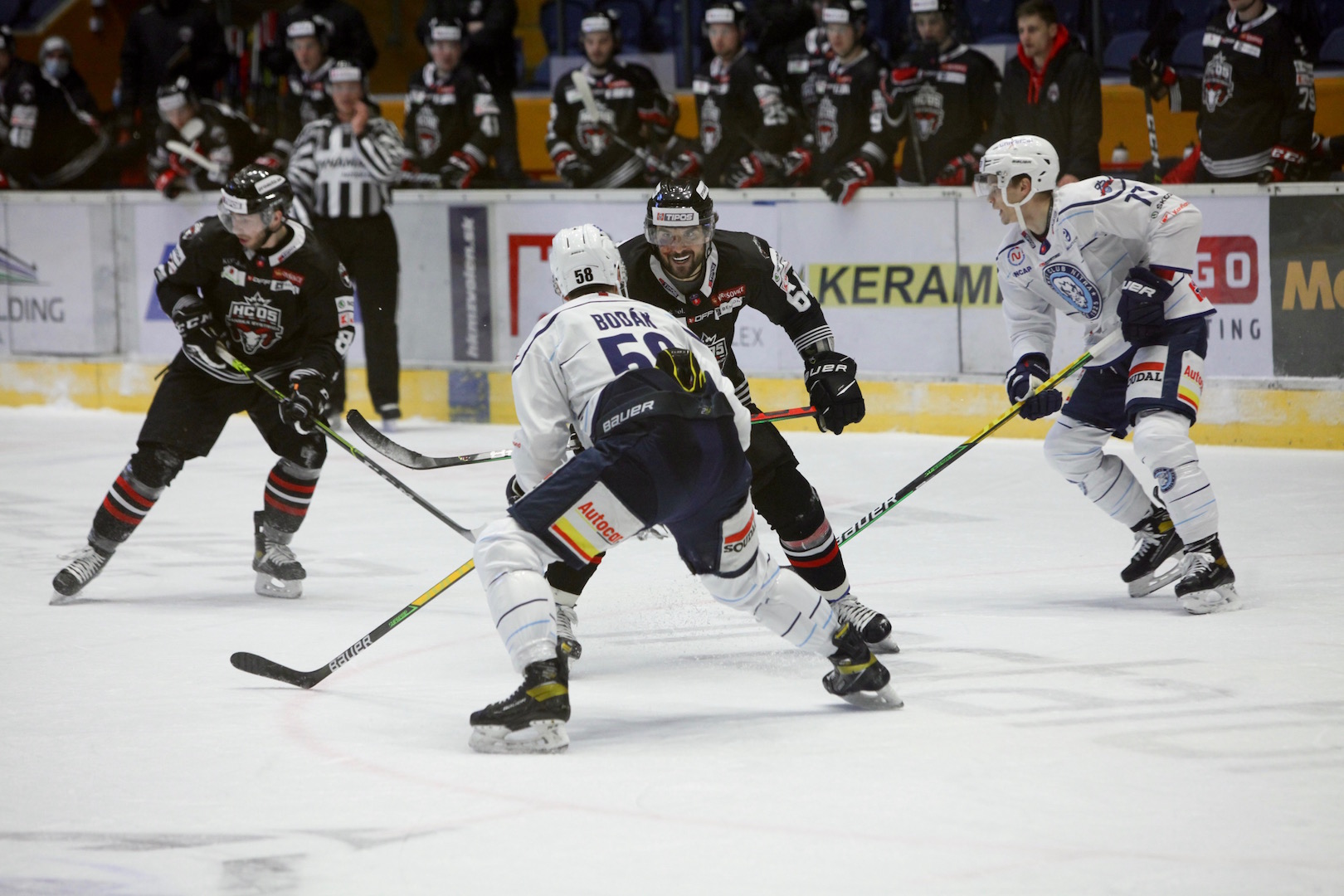 Na úvod zápasu si hokejisti minútou ticha pripomenuli úmrtie Jána Sliackeho vo veku nedožitých 65 rokov, ktorý bol dlhoročným fanúšikom hokeja, spolupracovníkom nášho klubu ako kameraman, videoanalytik a audiotechnik. Stretnutie sa začalo dvojnásobnou presilovkou ´baranov´, ktorú nevyužili. Cowleyho sa snažili prekonať dvakrát Lamper, po obkorčuľovaní bránky Sukeľ a z dorážky Kabáč. Viac z hry mali naďalej Banskobystričania, Ihnačák a Vašaš dobré príležitosti nepretavili síce do gólu, no v šestnástej minúte sa to podarilo Martinovi Faškovi-Rudášovi, ktorý poľahky skóroval spred bránkoviska po prihrávke Ihnačáka, ten dostal puk ako na podnose po chybe hosťujúceho beka Nemca – 1:0.