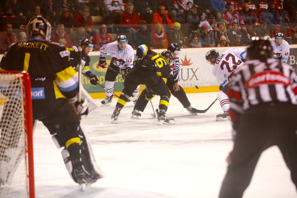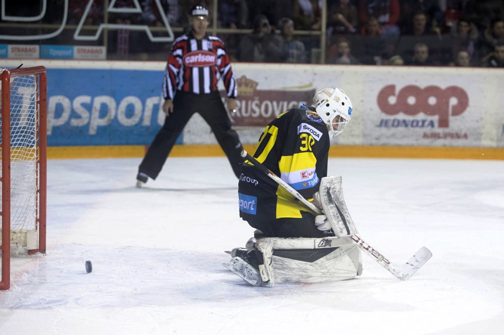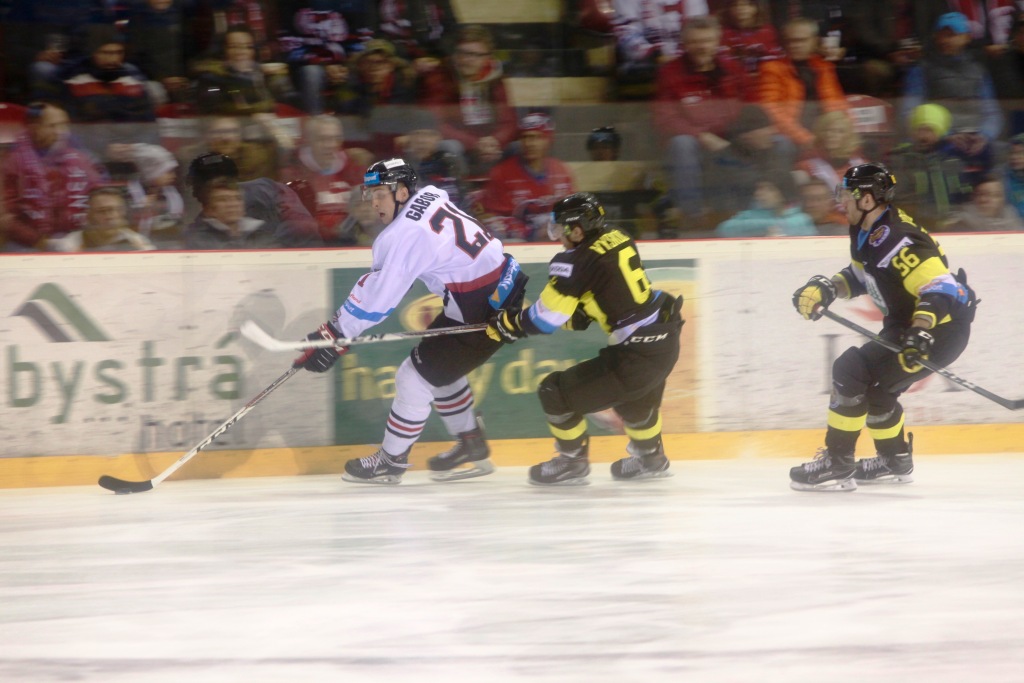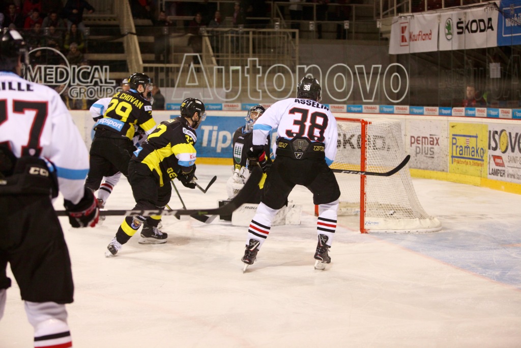 Ani v druhej tretine sa obraz hry nemenil. Dominovali sme na ľade a skóre navýšili. V 24. minúte prešiel pred Hacketta z pravej strany Matej Giľak a bekhendom ho pokoril – 6:1. Ďalšie veľké šance nevyužili zblízka sami pred gólmanom hostí Bartánus, Asselin a Faille. Na opačnej strane zamestnal Lukáša dobrou strelou z kruhu Kuklev. V 36. minúte sme hrali presilovku, Aliu sa pekne preštrikoval dopredu a hoci jeho koncovku brankár kryl, na dorážkuDalibora Bortňáka nemal nárok –7:1. Do prestávky sa ešte presadil švihom z vrchnej časti kruhu bližšie k strede osi obranca Branislav Kubka – 8:1 a sólový nájazd od útočnej modrej čiary následne nevyužil vďaka dobrému zákroku Hacketta Češík.
