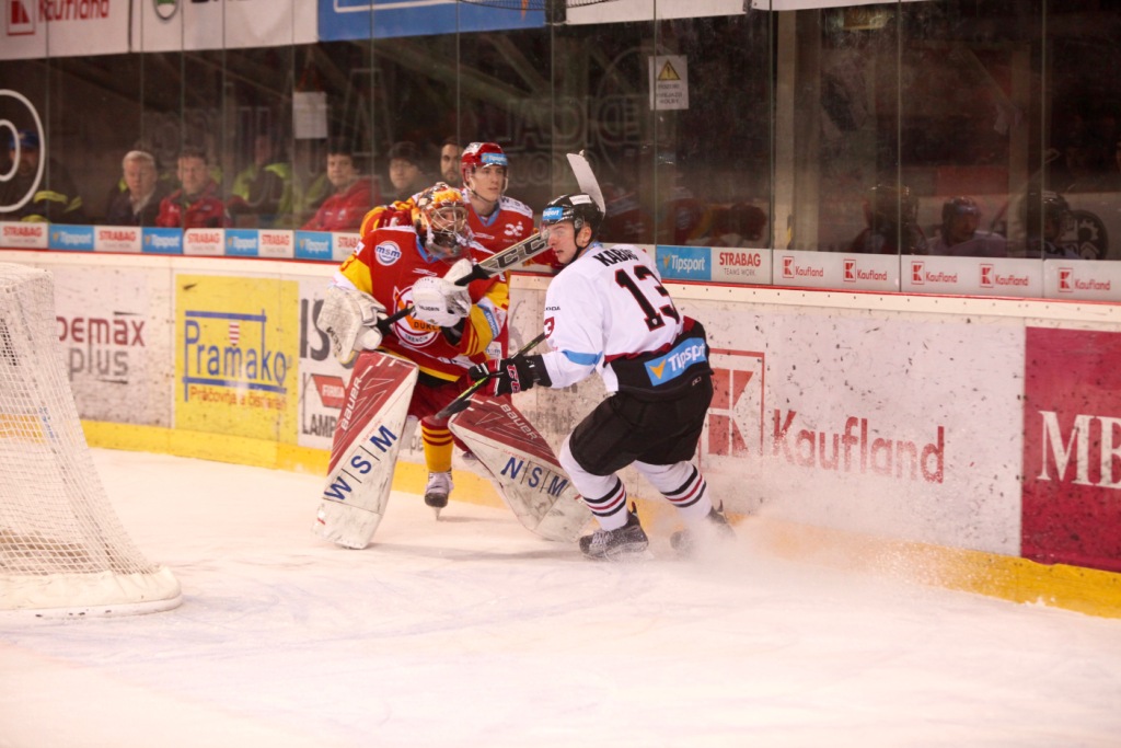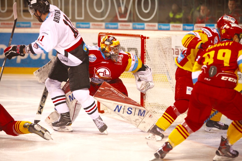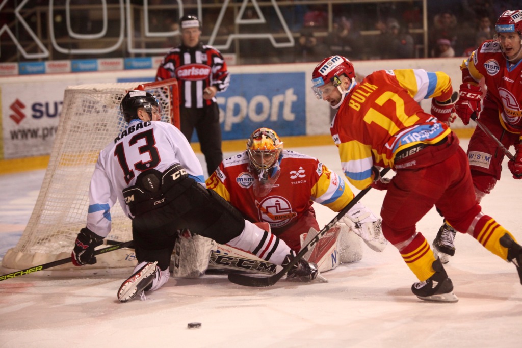 Trenčania mali dobrý nástup do zápasu. Už v 32 sekunde Bezúch poslal puk do našej siete, avšak korčuľou, takže gól platiť nemohol. Tento moment ´baranov´ akoby prebral, boli aktívnejší a vyplatilo sa. V šiestej minúte si pri mantineli zobral puk Tomáš Surový, nakorčuľoval s ním do kruhu a strieľal presne do vinkla – 1:0. Mali sme i ďalšie šance, pred Hiadlovským neuspel najprv Asselin, následne Bartánus a Faille. Prišiel teda trest v podobe inkasovaného gólu. V šestnástej minúte sa voľný Varga neulakomil na strelu, prihral rýchlemu Radivojevičovi, ktorý puk pohodlne poslal do našej odkrytej svätyne – 1:1. Prešlo 78 sekúnd a bolo 1:2. Sojčík od bočného mantinelu nahodil puk na prednú žrď, kde číhal Švec a jeho teč dokonale prekvapil Lassilu.