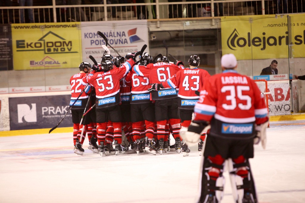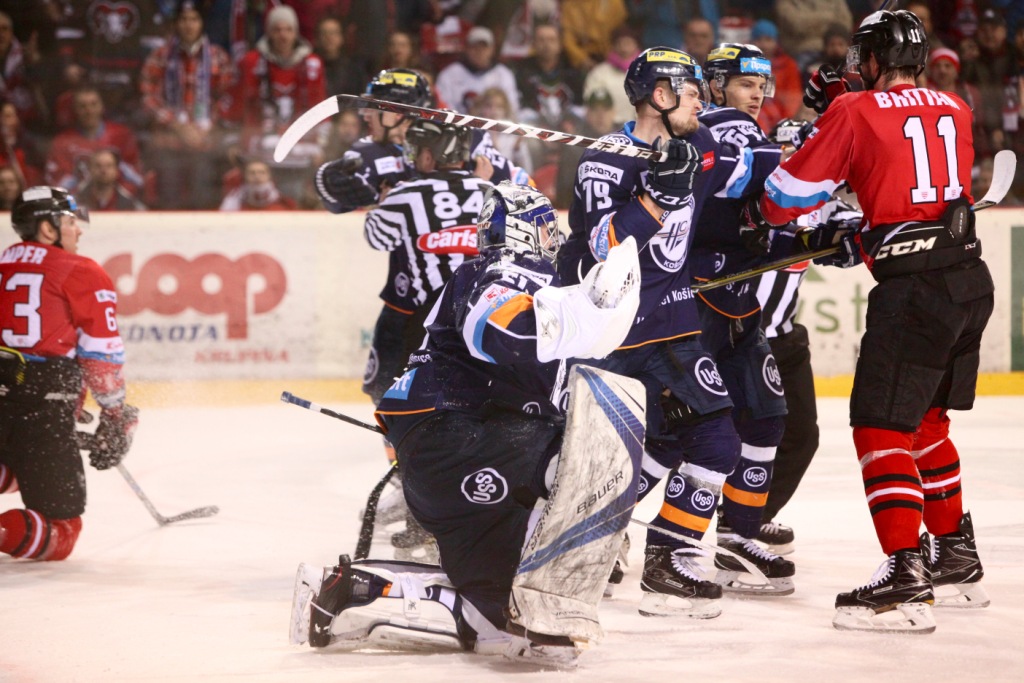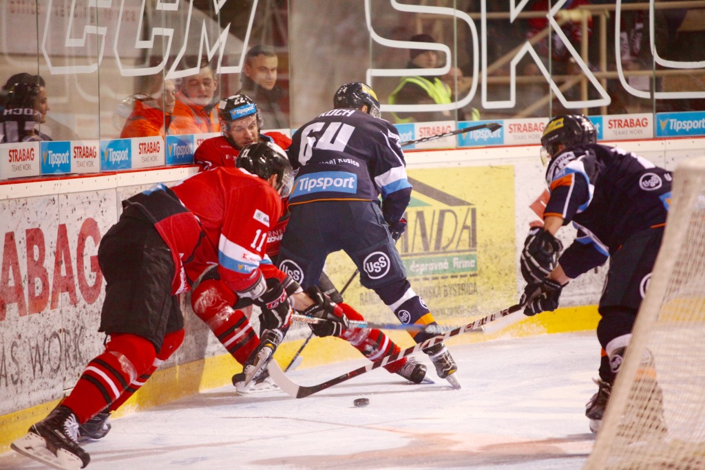 Banskobystričania v prvom štvrťfinále Kaufland play-off Tipsport ligy vyhrali na domácom ľade s Košicami 3:2 po samostatných nájazdoch, hoci po dvoch tretinách prehrávali 0:2. S pozmenenou zostavou bez reprezentanta Bubelu v červených dresoch zabrali v tretej tretine, pričom mali aj poriadny kus šťastia.