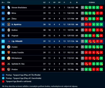 Hokejisti Banskej Bystrice v 39. kole Tipsport extraligy vysoko prehrali na ľade siedmeho celku súťaže Liptovského Mikuláša. Inkasovali až osem gólov, pričom strelili len jeden. Zaknihovali tak druhú prehru v rade, pričom Liptáci bodovali v treťom zápase po sebe. Tímu spod Urpína nepomohla ani výmena brankárov po treťom góle v jedenástej minúte, kedy Rabčana nahradil Mitens.