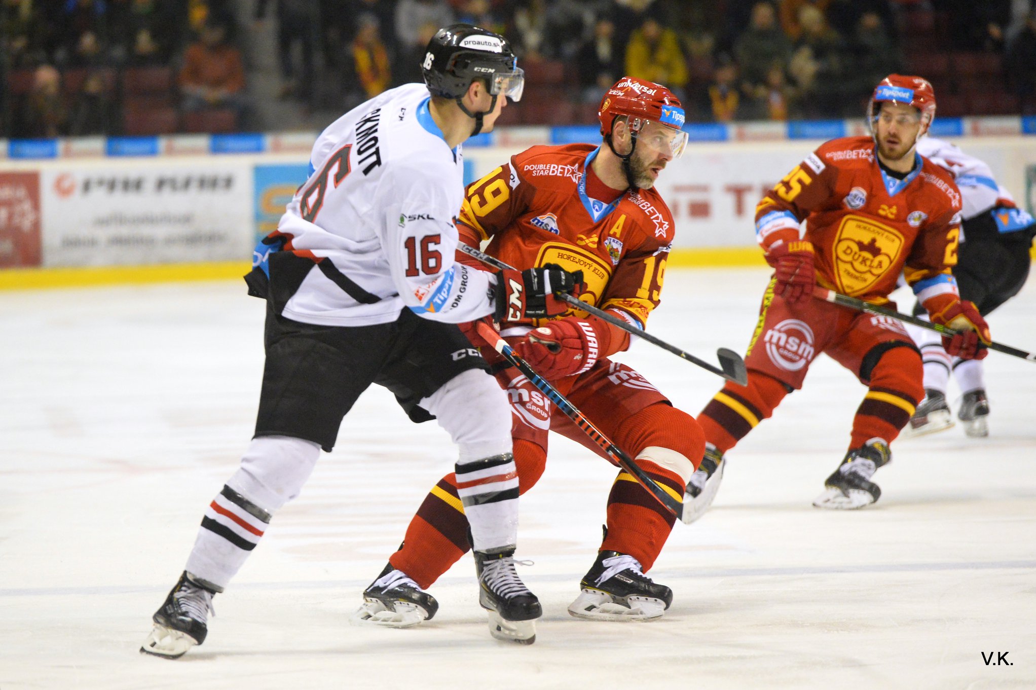 Banskobystrickí hokejisti v 36. kole Tipsport ligy vyhrali štvrtý zápas v rade, tentoraz v Trenčíne. Tamojšiu Duklu sme zdolali tesne 3:2. Nastúpili sme opäť bez viacerých opôr základného kádra, pre zdravotné problémy chýbali štyria hráči – kapitán Ďatelinka a trojica útočníkov Bartánus, Kabáč a Šoltés.