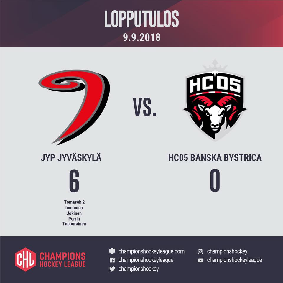 JYP Jyväskylä – HC’05 iClinic Banská Bystrica 6:0 (1:0, 3:0, 2:0)