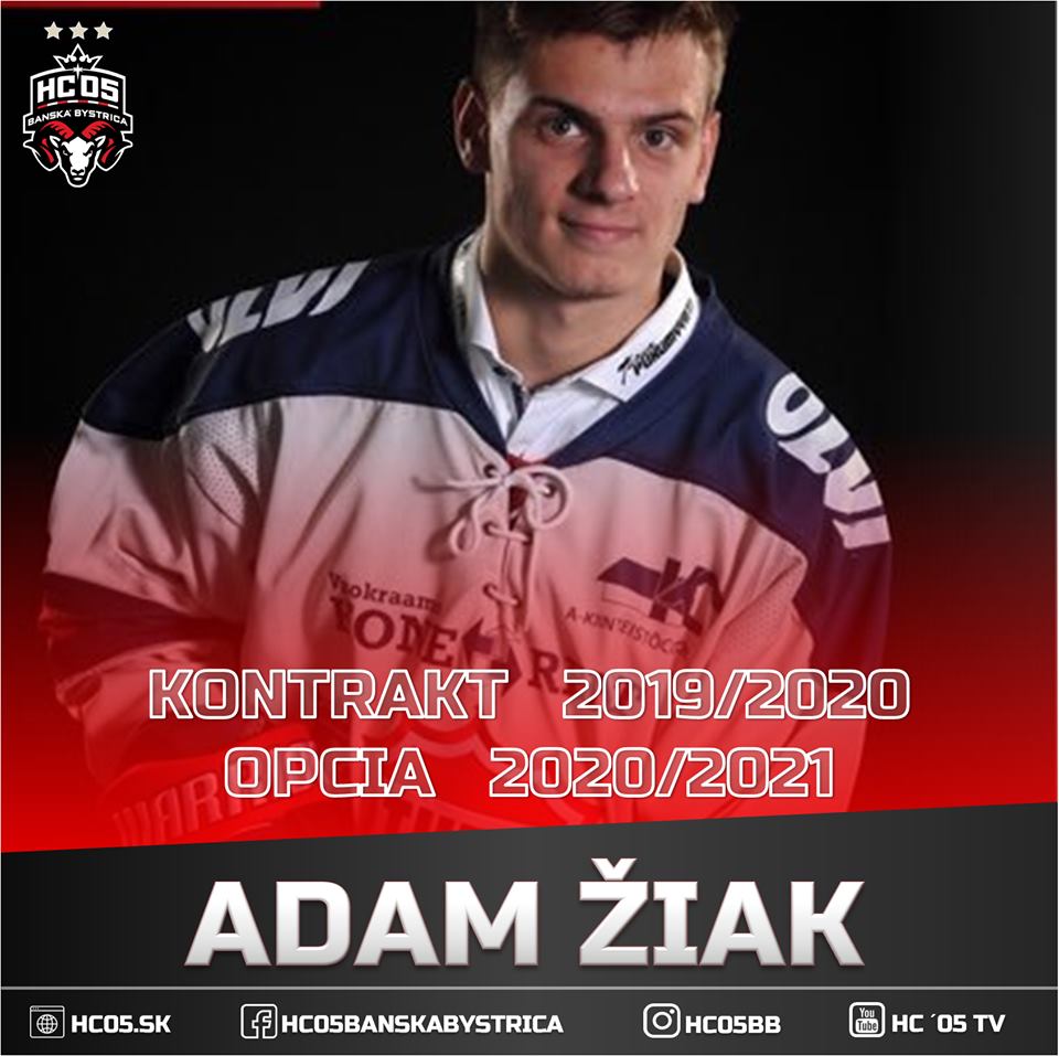Zadné rady nášho klubu posilní stále len 19-ročný obranca Adam Žiak. Ten strávil uplynulé dve sezóny vo Fínsku. Adam je fanúšikom známy najmä zo svojho pôsobenia vo výbere Slovenska do 18 rokov a tak isto vo výbere do 20 rokov, s ktorými absolvoval aj majstrovstvá sveta týchto vekových kategórií. Meria 170cm a zmluvu podpísal s HC ´05 na jeden rok i s opciou. Športový manažér ´baranov´ Július Koval na margo angažovania tohto mladého talentovaného ´beka´ pre oficiálnu klubovú stránku uviedol: