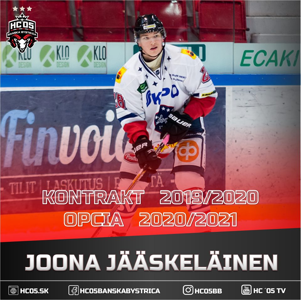 Najnovšou posilou je 22-ročný fínsky útočník Joona Jääskeläinen. Rodák z mestečka Imatra, ktoré leží neďaleko ruských hraníc, podpísal zmluvu s našim HC ´05 na jeden rok aj s opciou. Prevažnú väčšinu svojej seniorskej kariéry odohral v druhej najvyššej fínskej lige Mestis. Na tri desiatky zápasov však dostal šancu aj v najvyššej súťaži.