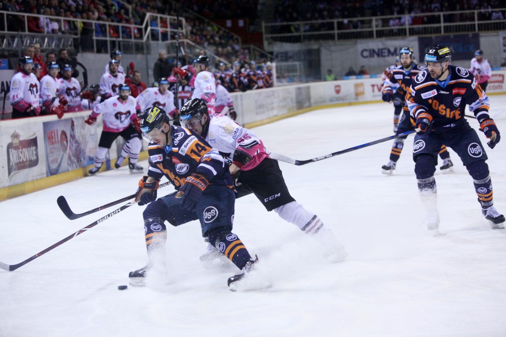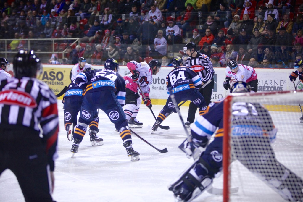 V 50. kole Tipsport ligy privítali hokejisti Banskej Bystrice na domácom ľade Košice v bránke s Rusom Lisutinom. Nastúpili sme v špeciálnej sade ružových dresov za boj proti rakovine prsníka. Úvodné buly duelu hodil niekoľkonásobný majster sveta v thajskom boxe Vladimír Moravčík. Dôležité však bolo, že naši ´barani´ jasne vyhrali 5:1. Bola to desiata jubilejná domáca výhra v rade nad týmto súperom.
