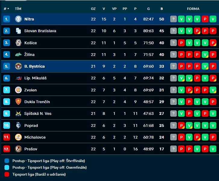 Hokejisti Banskej Bystrice v dohrávke 22. kole Tipsport ligy podľahli na svojom ľade s Nitrou vysoko 1:8 a po menšej prestávke zapríčinenej virózou tak prehrali tretí duel za sebou. Nepomohol im ani návrat kanoniera Turnbulla do zostavy. Tím spod Zobora naopak vyhral tretí zápas v sérii a poistil si prvú priečku v tabuľke. Bystrický kouč Wojnar priznal, že pod porážkou sú dôsledky virózy, pre ktorú ´barani´ neodohrali dva predchádzajúce zápasy.