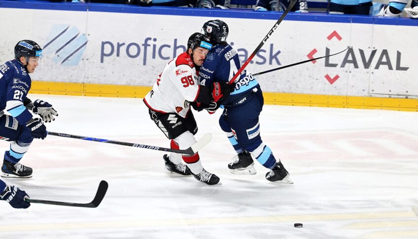 Úvod zápasu priniesol opatrný hokej, ako prví výraznejšie pohrozili hostia. V 15. minúte sa po nahodení Okoličányho od modrej čiary dostal k puku pred bránou Čederle, obišiel Vitolsa a otvoril skóre stretnutia – 0:1. Domáca odpoveď mohla prísť krátko na to. V 17. minúte Kukuča našiel pred bránou Šoltésa, no vyrovnaniu chýbali doslova centimetre. Vzápätí Passoltova strela len o milimetre minula žrď.