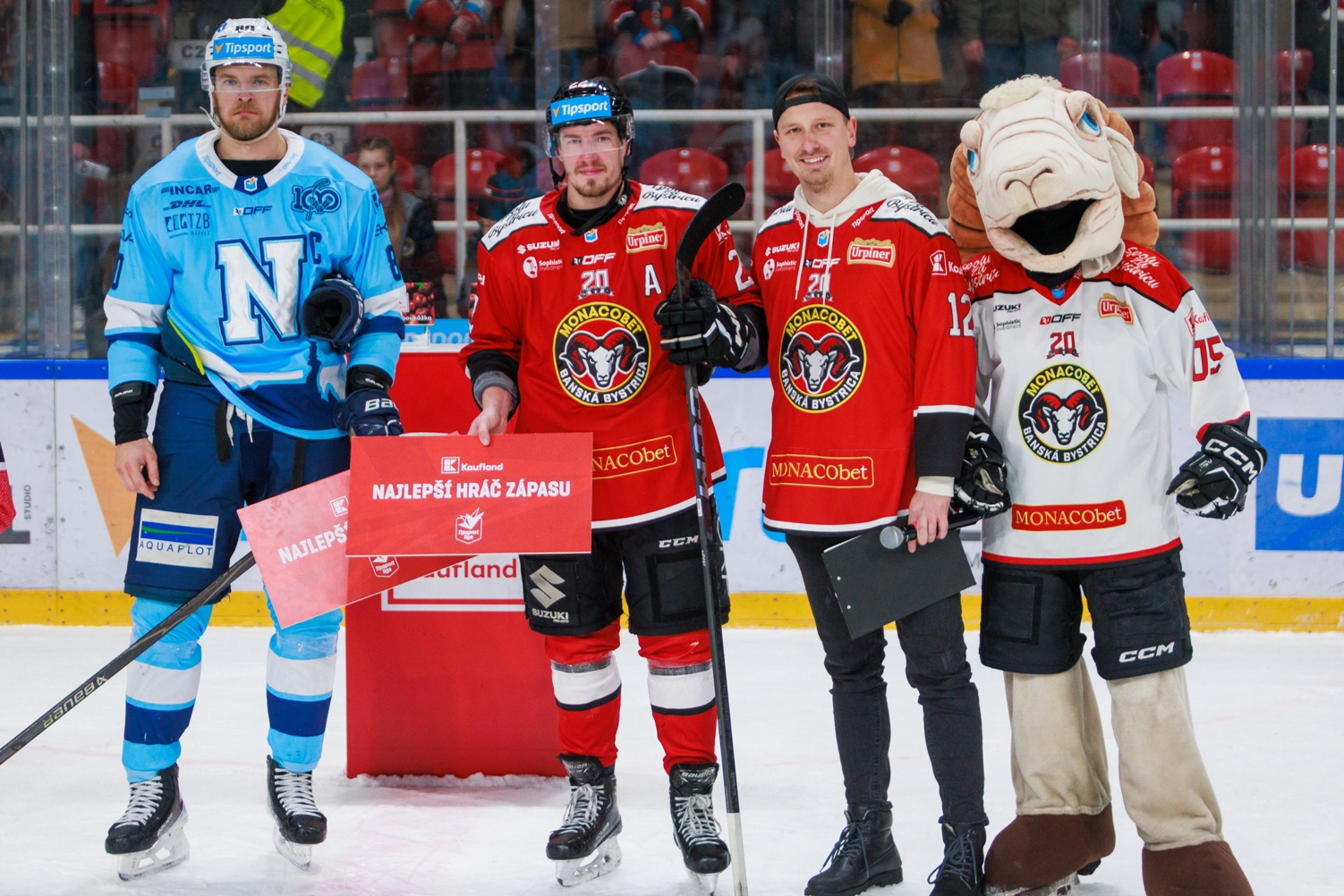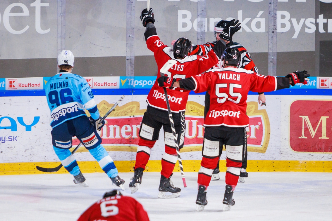 Hokejisti Banskej Bystrice v 36. kole Tipsport extraligy zdolali na svojom ľade druhú Nitru 5:2 a priblížili sa k nej v tabuľke už len na rozdiel dvoch bodov. Tím spod Urpína zaknihoval ôsmu výhru za sebou a dostal sa v tabuľke cez Žilinu na štvrtú priečku. Dvoma gólmi sa blysli Mykucha a Šoltés. Mužstvo spod Zobora prehralo tretí duel z posledných štyroch.