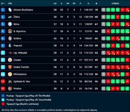 Hokejisti Banskej Bystrice si v 38. kole Tipsport extraligy nepripísali desiate víťazstvo za sebou. Na svojom ľade podľahli Slovanu Bratislava tesne 2:3 a hostia si tak poistili treťou výhrou v rade prvé miesto v tabuľke. Barani spod Urpína tak odmietli ísť na druhú priečku pred Nitru, kam sa dostala Žilina. Klesli na štvrtú pozíciu, keď nezvládli najmä presilovky a inkasovali v oslabení rozhodujúci tretí gól.