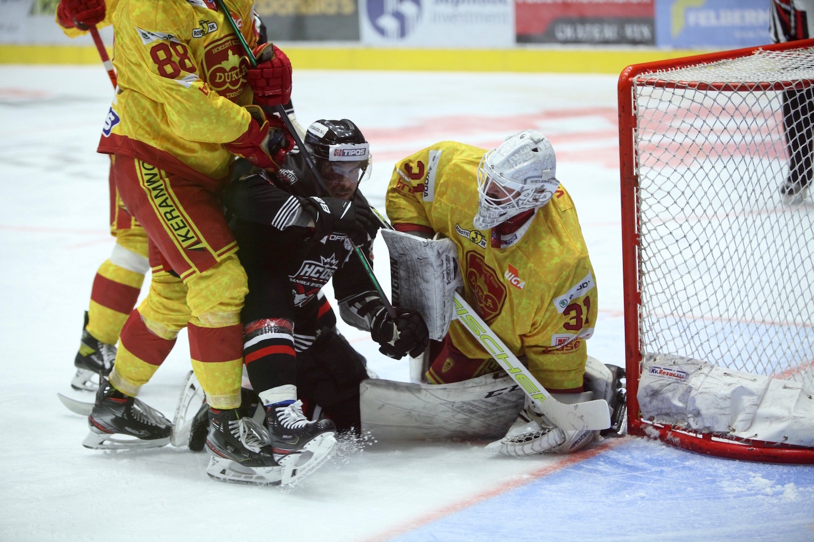 Úvod duelu vo Zvolene, kde má banskobystrický tím dočasný domovský stánok, bol z oboch strán opatrný. Prvú vážnejšiu šancu sme zaznamenali až v piatej minúte. Ocitol sa v nej Tamáši zblízka, bekhendom trenčianskeho gólmana neprekonal. Potom hrozili hostia, Krajč zakončoval z dvoch metrov voľný, proti bol Belányi. Ten napokon kapituloval v jedenástej minúte, pretože ho roztancoval Kettunen a poslal puk pomedzi jeho nohy, tento hokejista prešiel až z obrannej tretiny po pravej strane pred bránku, keď stihol po ceste vycvičiť Ďatelinku – 0:1. Udialo sa tak v hre štyroch proti štyrom. Bystričania následne nevyužili presilovku a mohli znovu pykať v štyroch proti štyrom. Opäť bol v šanci Kettunen, len tesne minul odkrytú svätyňu Belányiho. Ďalšiu veľkú príležitosť mal Sádecký v presilovke, ocitol sa zoči – voči gólmanovi HC ´05, no neuspel. Na konci prvej tretiny mali početnú výhodu aj ´barani´, ale nevyužili ju. Vašaš sám pri ľavej žŕdke nenašiel recept na Valenta.