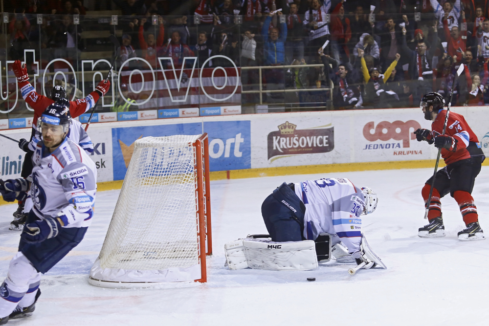 Banskobystrickí hokejisti vyhrali prvý semifinálový duel play-off Tipsport ligy na domácom ľade s Popradom 5:4 a ujali sa vedenia v sérii hranej na štyri víťazstvá 1:0. Ani raz sme v dueli neprehrávali, no súper dvakrát vyrovnal. Rozhodujúci gól sme dali v jedinej našej presilovke v celom stretnutí.