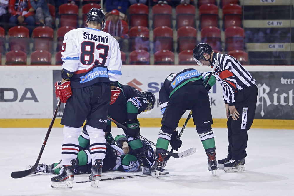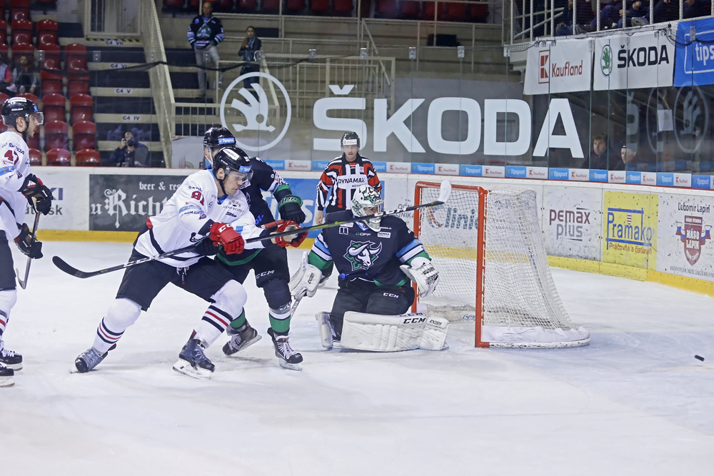 V prvej tretine začali o niečo viac hroziť hostia, skúšali to z kruhov netradične obrancovia Drtina a Hatala, ale náš Beskorowany bol medzi žrďami pozorný. Najväčšiu prácu mal po prieniku Pospíšila, ktorý pred ním zoči – voči neuspel. Barani pohrozili v oslabení. Veľa priestoru dostal Hickmott, no pokým si porozumel s pukom, brankár Kristín bol už na mieste a dobre zasiahol. Novozámčania nevyužili tri presilovky, keď išiel vždy na trestnú lavicu náš kapitán Ďatelinka, gól dali napokon v hre piatich proti piatim. Ťažili z chybnej domácej rozohrávky, Bečka nahodil puk od modrej a úspešne ho tečoval Radim Hruška0:1.